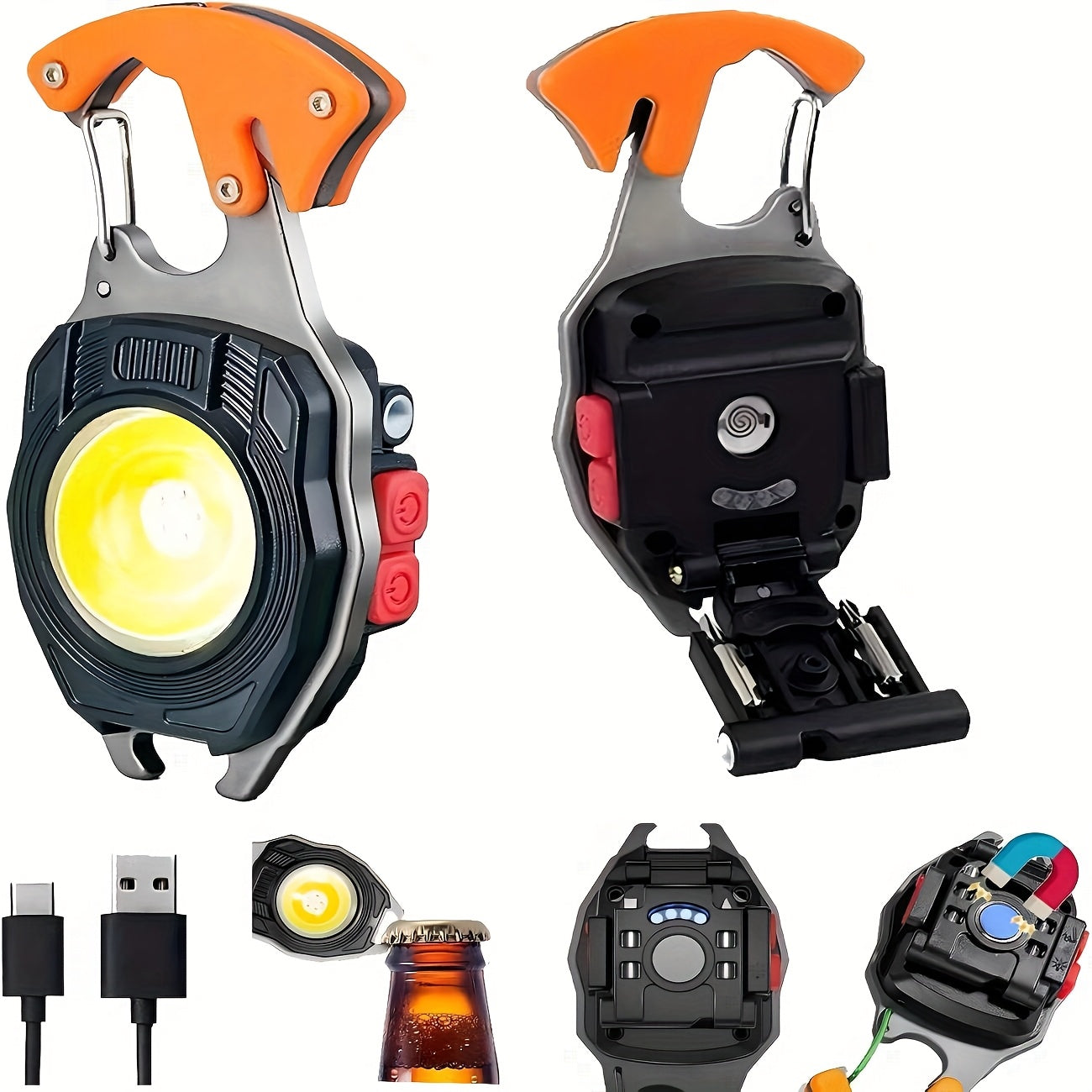 Keychain Flashlight Multitool with Lighter Rechargeable COB LED USB C Charging 500 Lumen 500m Range Tactical EDC Camping