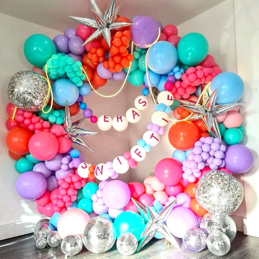 - Statement balloons: 22" metallic green balloons paired with hot pink and purple accents for a vivid, retro vibe that photographs beautifully.
