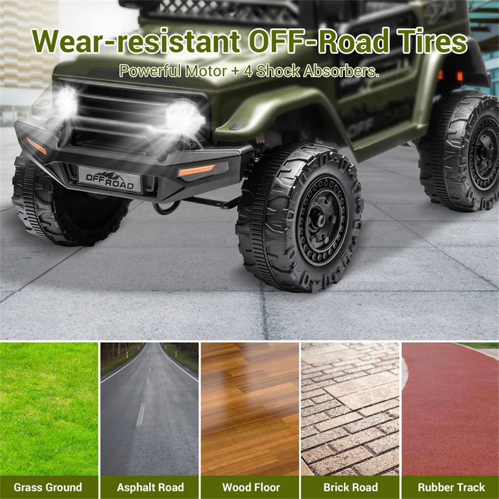 - Endless fun on the move: You get a volume-adjustable horn, easy start/stop, a remote control for grown-ups, USB/TF music playback, and a battery-status display.