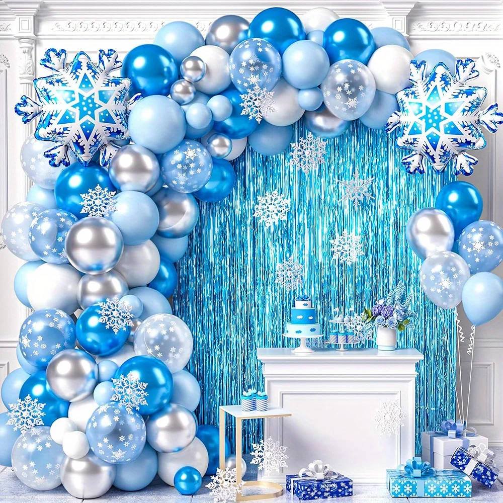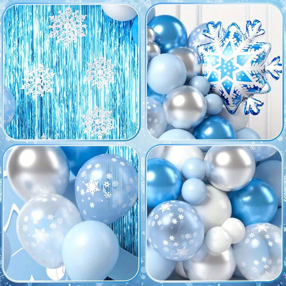 136pcs Snow and Ice Themed Latex Balloon Set for Winter Party Decorations Christmas Holiday Celebration