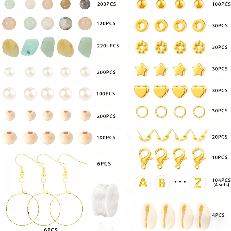 1562pcs/1 Pack of Natural Stone Bead Bracelet Jewelry Making Kit - Natural Stones, Faux Pearls, And Wooden Beads, Paired with Golden Metal | Bohemian Style Handmade Bracelet And Earring Materials, Perfect Handmade Gift for Wo