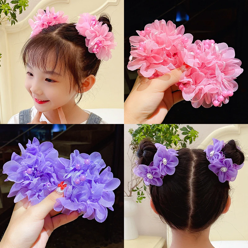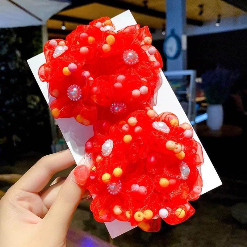 Fluffy Flower Hair Rings For Kids Elastic Hair Bands Gift