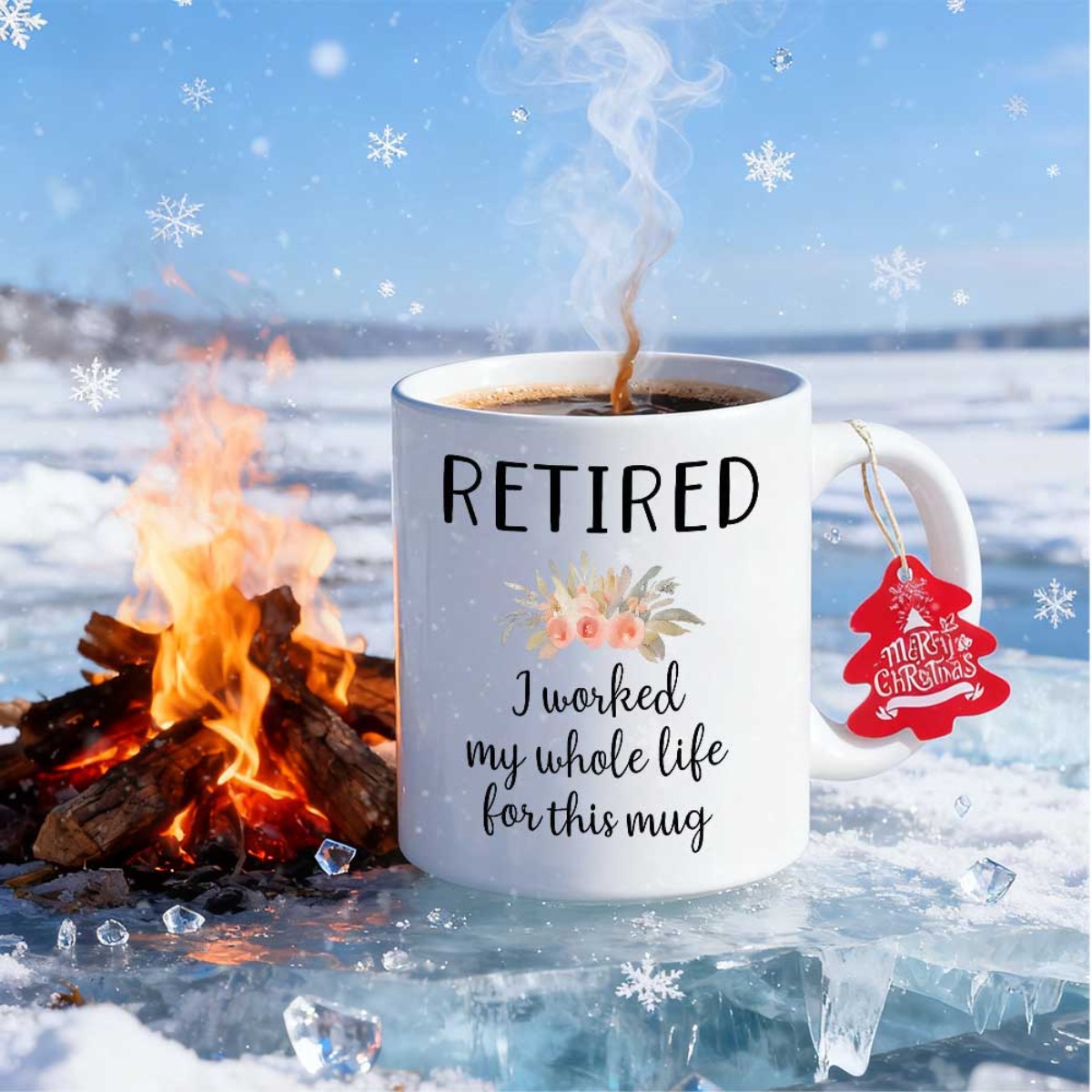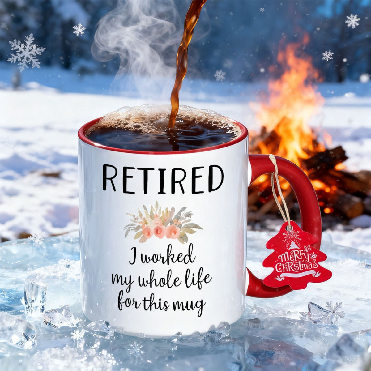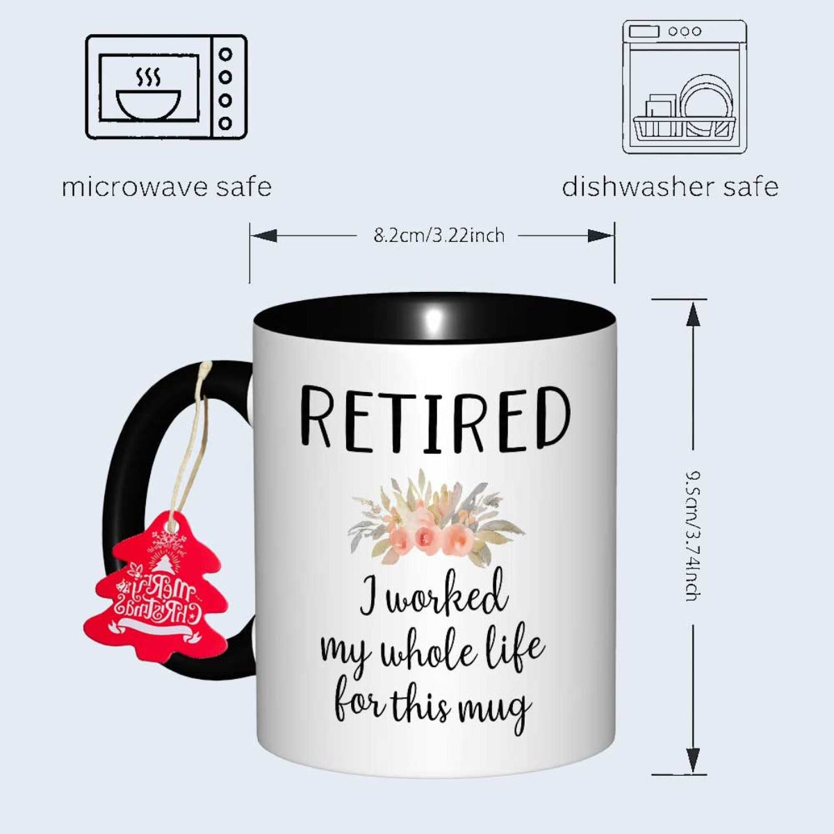 1pc 11oz Retired-Themed Mug with Retired Label & Coffee Bean Design - Dishwasher Coffee Cup for Retirees, Gift for Retiring Coworkers, Men & Women, Durable Retirement Party Accessories (Black/White)