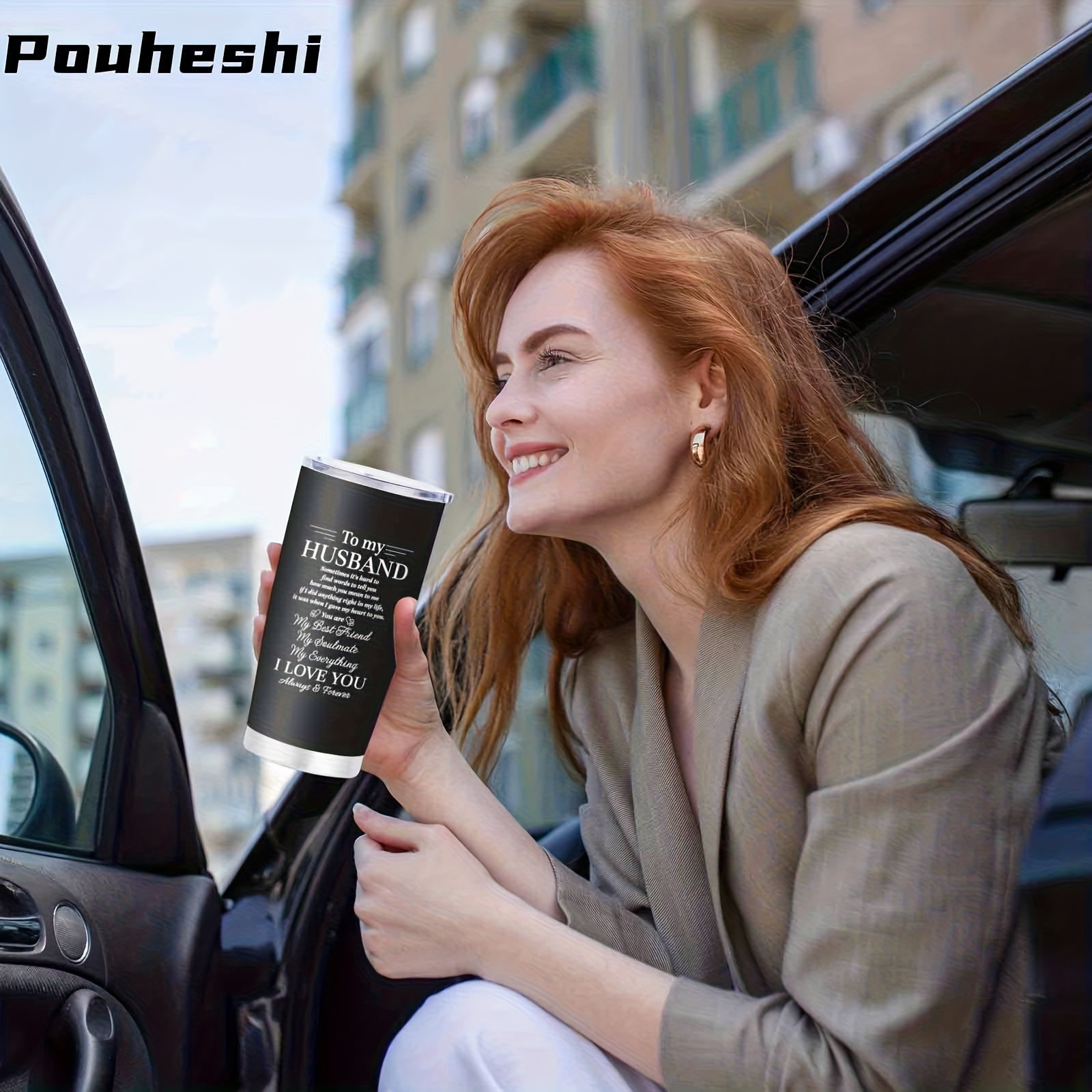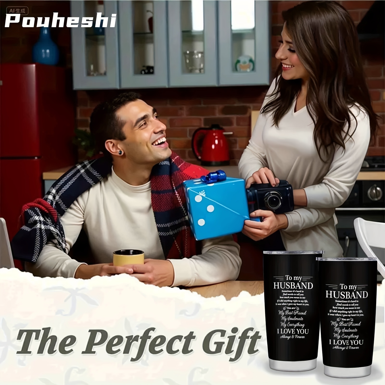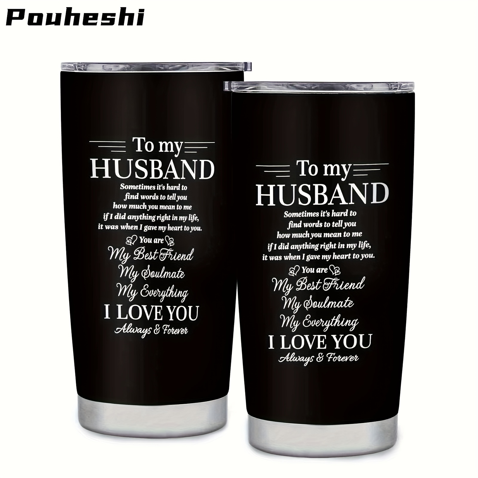 1pc 20oz Stainless Steel "to My Husband" Insulated Water Bottle with Sliding Lid & Straw - Double-Wall Vacuum Insulation, Leak-Proof, -Slip Grip, Message Engravable - Reusable Gift for Husband, Christmas, Anniversary, Valenti