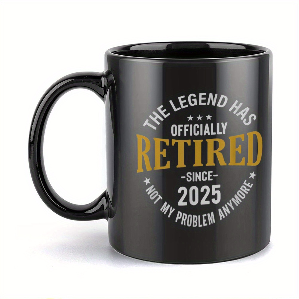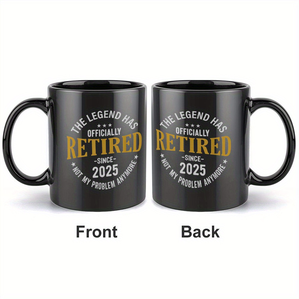 1pc Funny Retirement Mug - "Officially Retired Since 2025" Novelty Cup, Black Ceramic Coffee Cup with Golden Text, Microwave Safe - Retirement Party Gifts for Teachers, Postal Workers, Coworkers - Ceramic Cup, Teacher Appreci