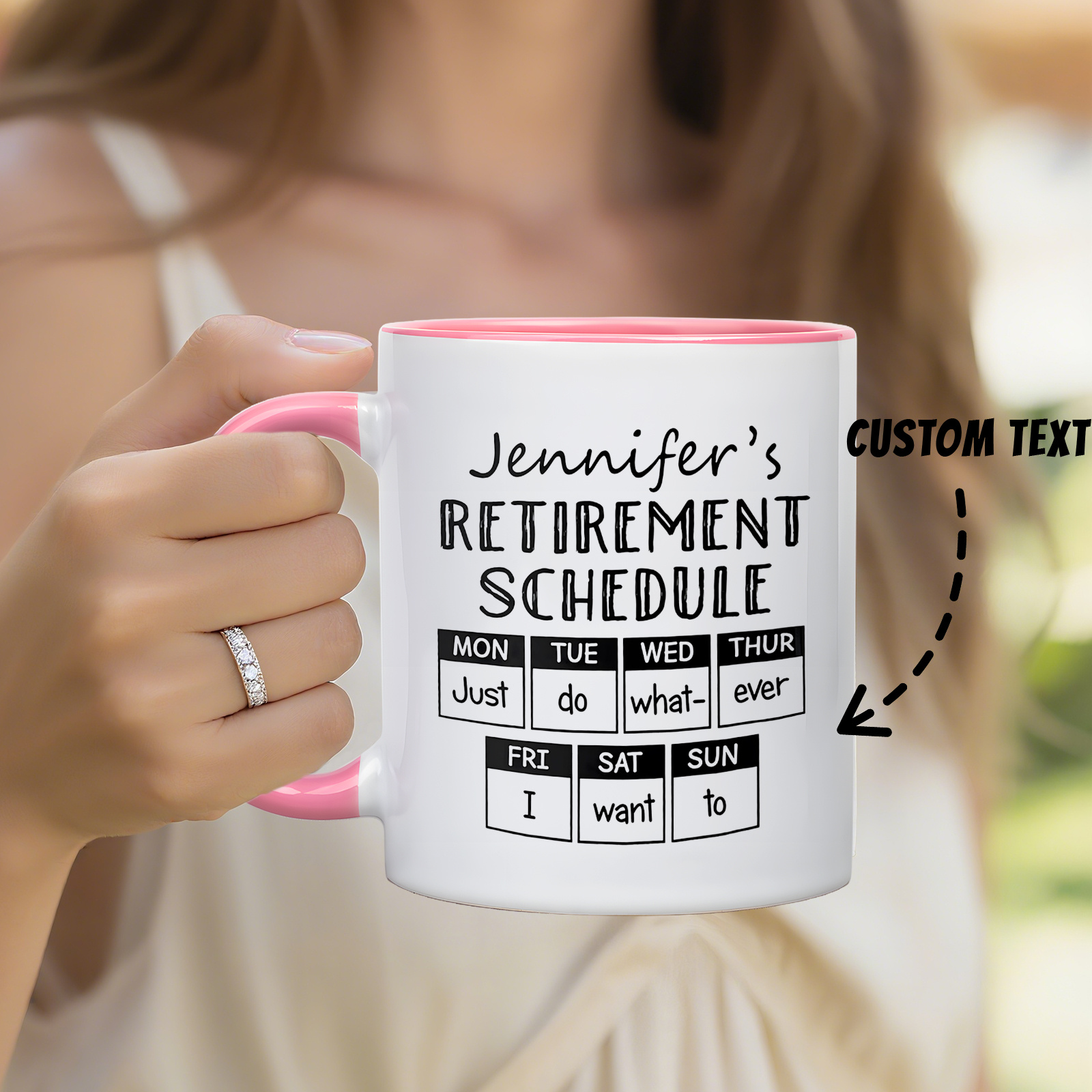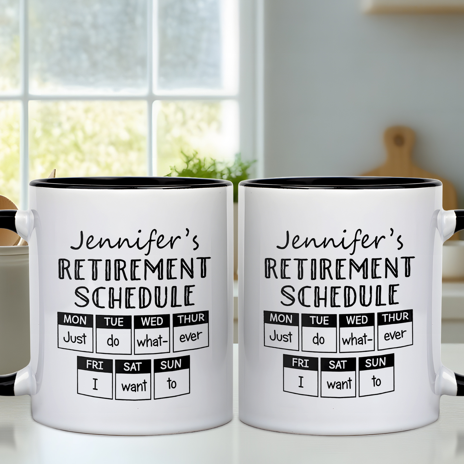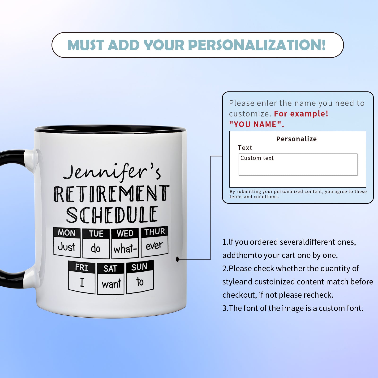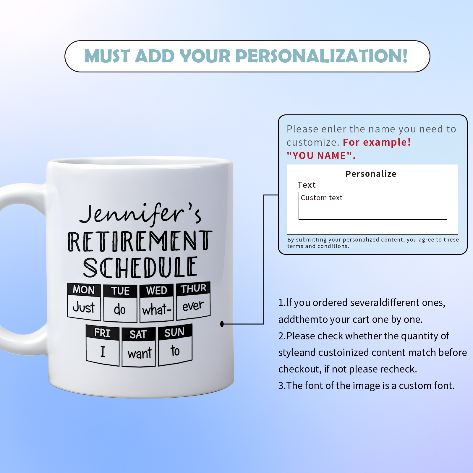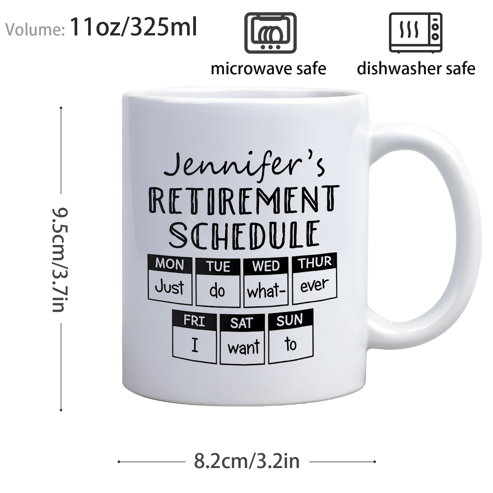 1pc Funny Retirement Mug with Personalized Name & Schedule - Ceramic Coffee Cup with Retirement Gift Idea, Retirement Party Favor for Women/Men, Grandma, Grandpa