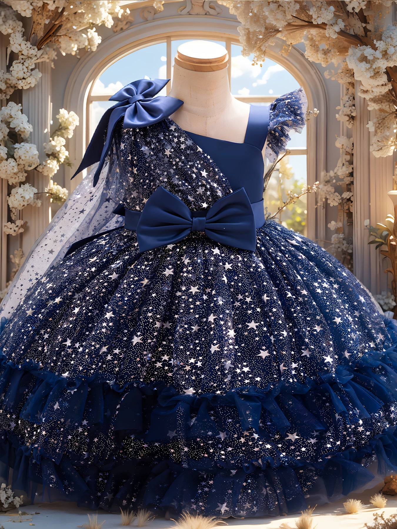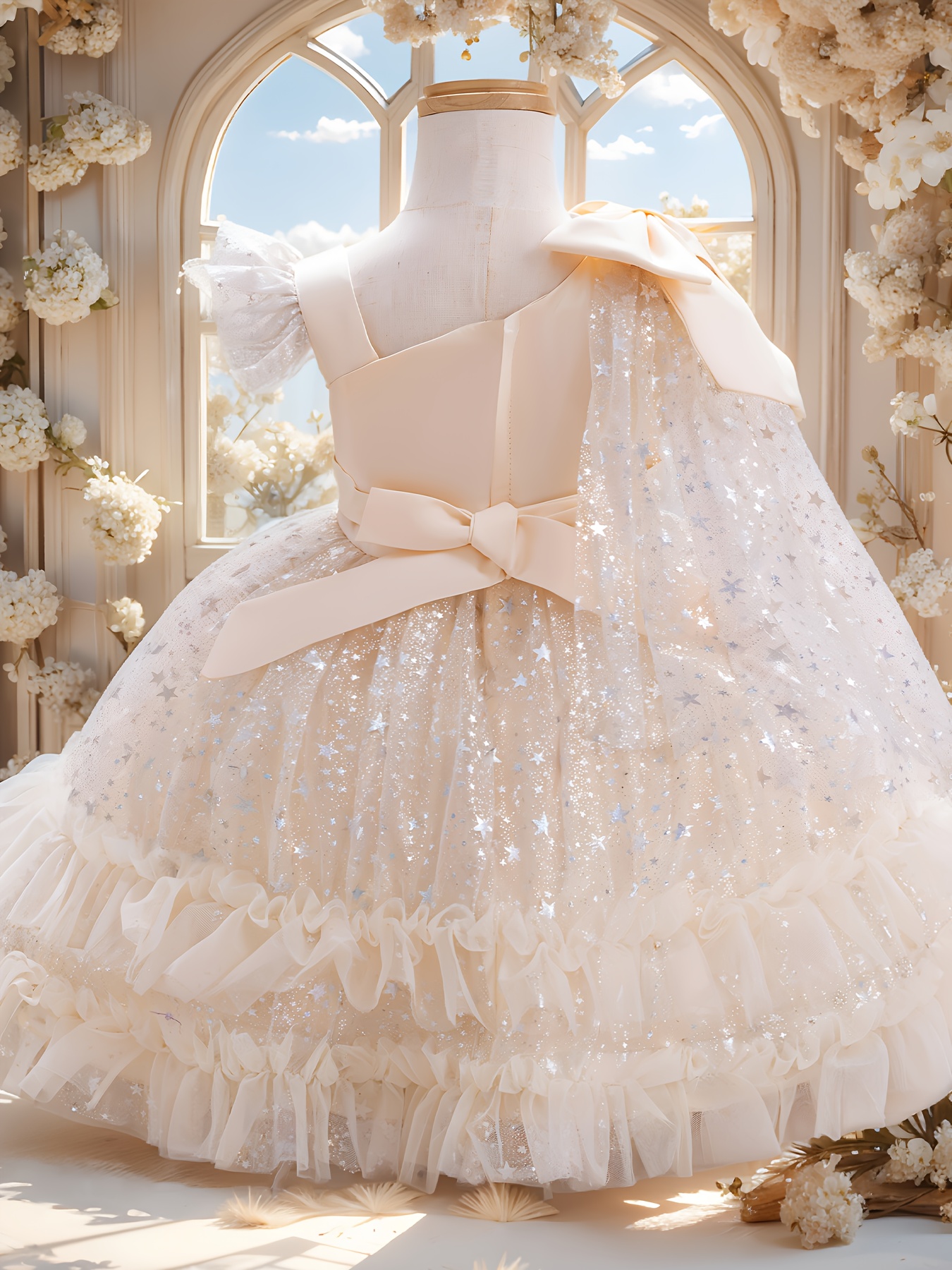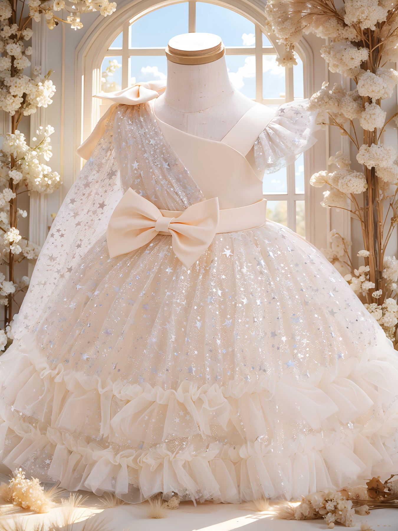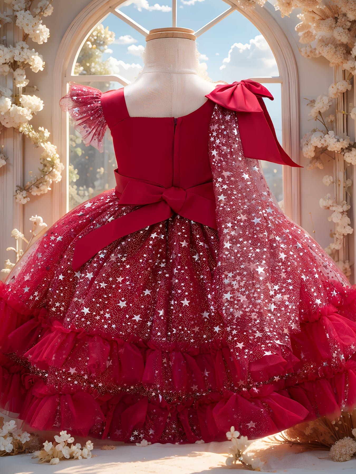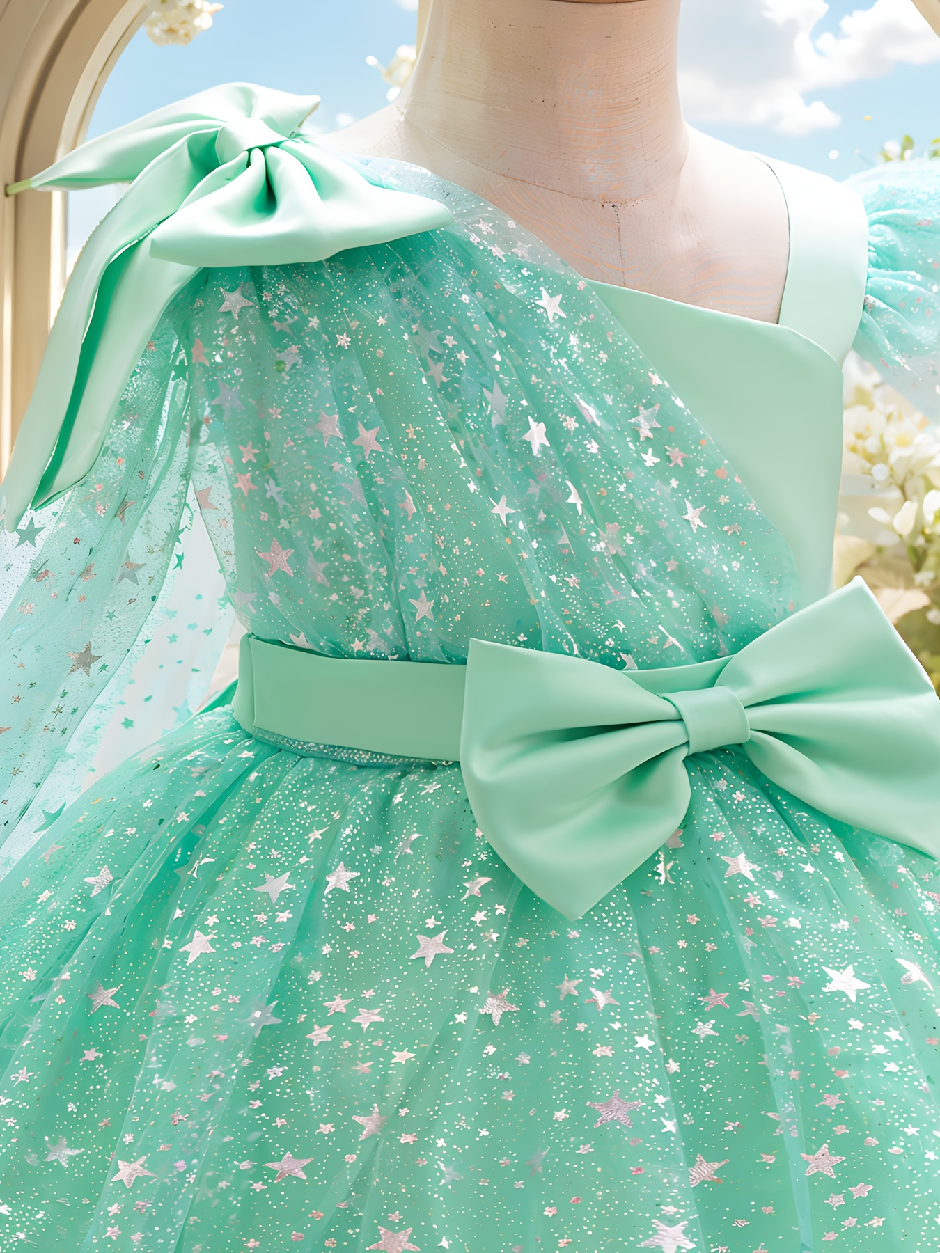 1st Birthday Girl Dress with Detachable Cape & Starry Tutu - Mint Green Sparkling Princess Party Gown, Soft Breathable Baby Girl for Weddings, Photo Shoots & Celebration Outfit (Short Sleeves, Belt)