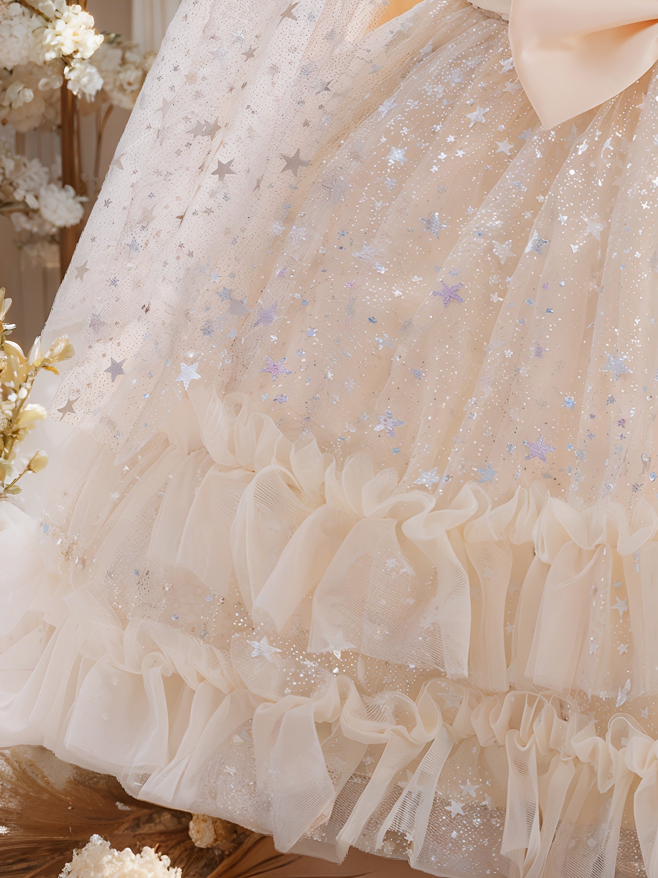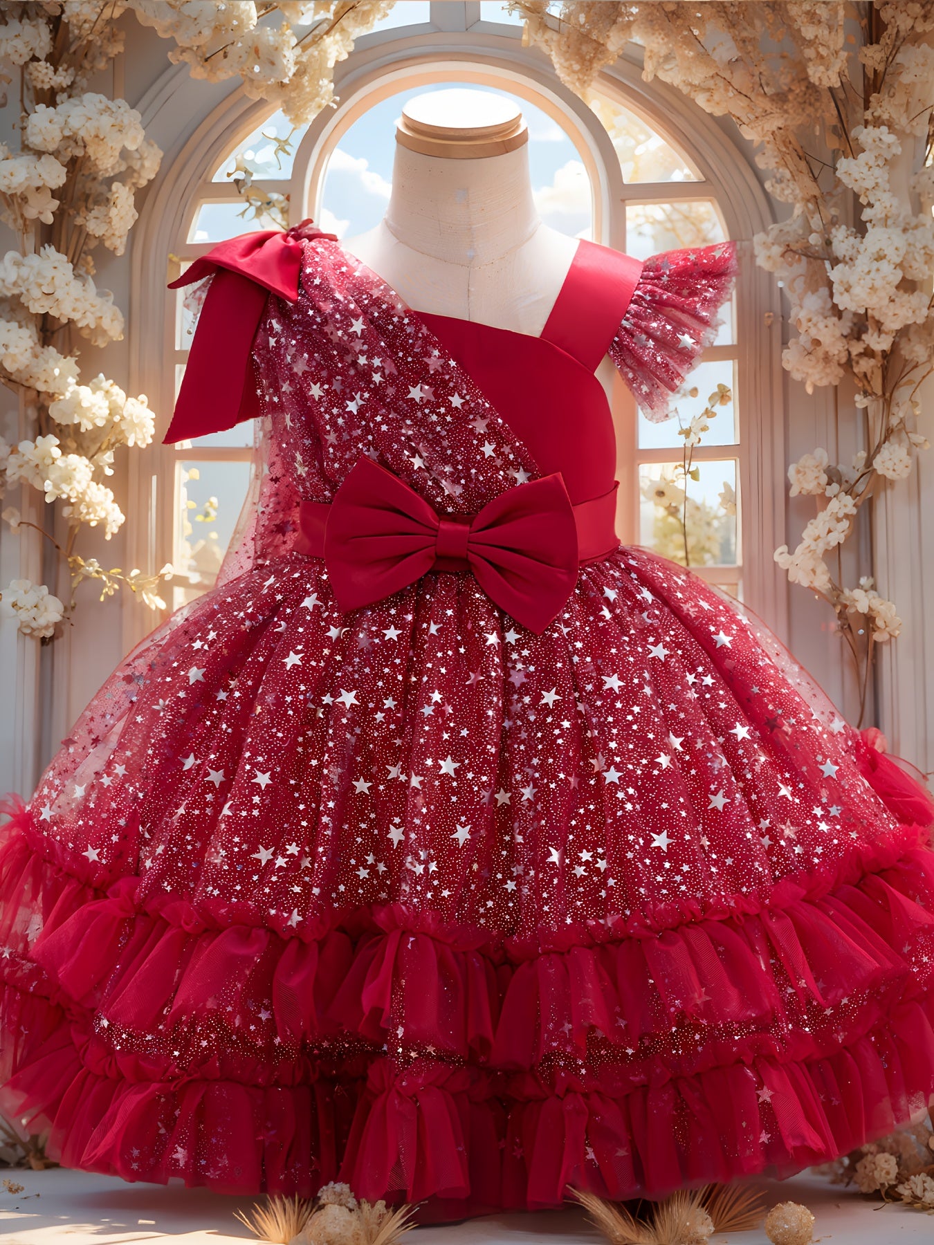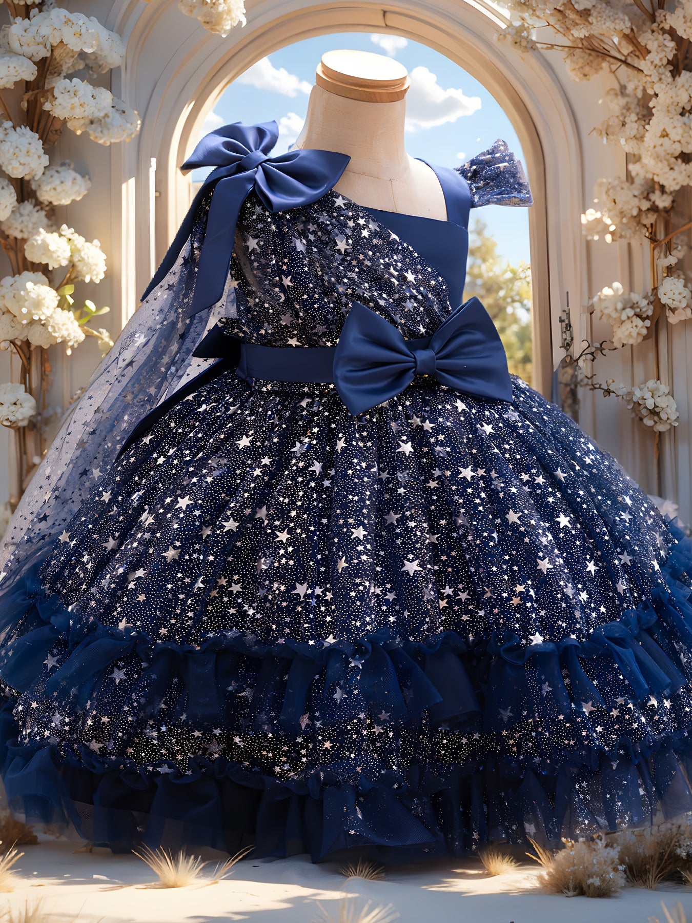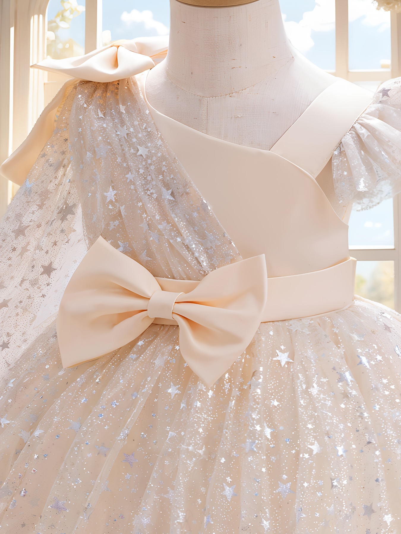 1st Birthday Girl Dress with Detachable Cape & Starry Tutu - Mint Green Sparkling Princess Party Gown, Soft Breathable Baby Girl for Weddings, Photo Shoots & Celebration Outfit (Short Sleeves, Belt)