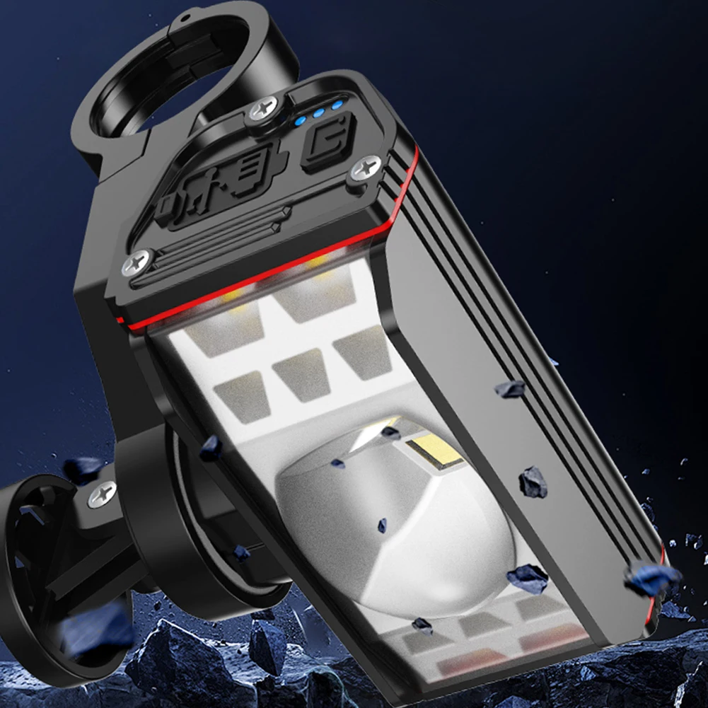 LED Bike Handlebar Flashlight USB Rechargeable MTB Mountain Bike Lamp Waterproof Outdoor Bike Headlight Bicycle Accessories Specification: Origin: Mainland China Material: Aluminum Alloy Wick: High-Power Wick + LED Light: White Light Floodlight + Red Orange Warning Battery: 5200mAh/2600mAh Brightness: About 1800LM Charging: Type-C/Mobile Phone Charging Battery Life: 4-5h