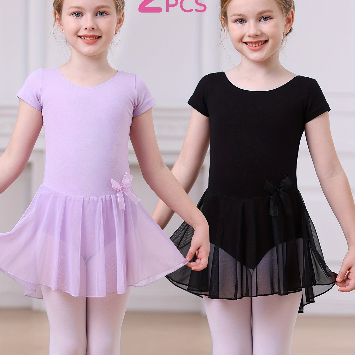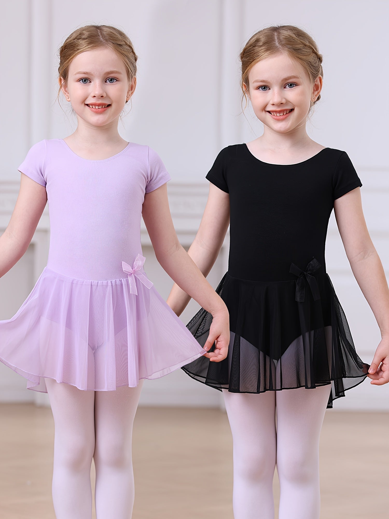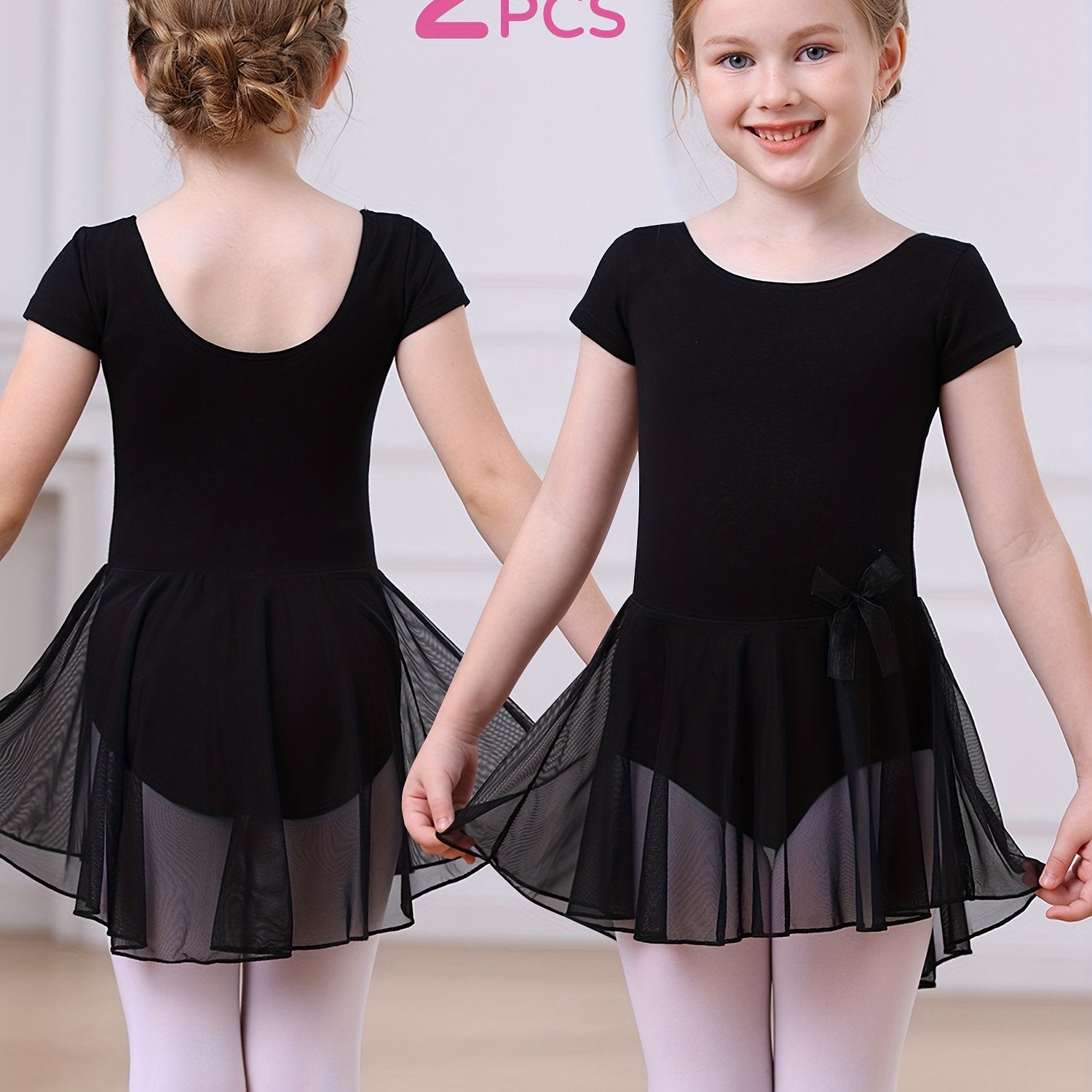 2pcs Girls Ballet Tutu Dress Set - Classic Style, Stretchy Leotard with Detachable Tulle Skirt, Ruffled Bow Trim - Perfect Christmas Gift, Perfect for Outdoor