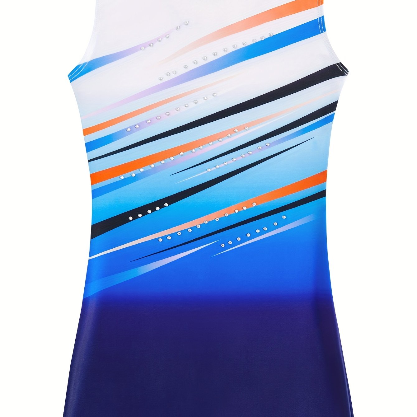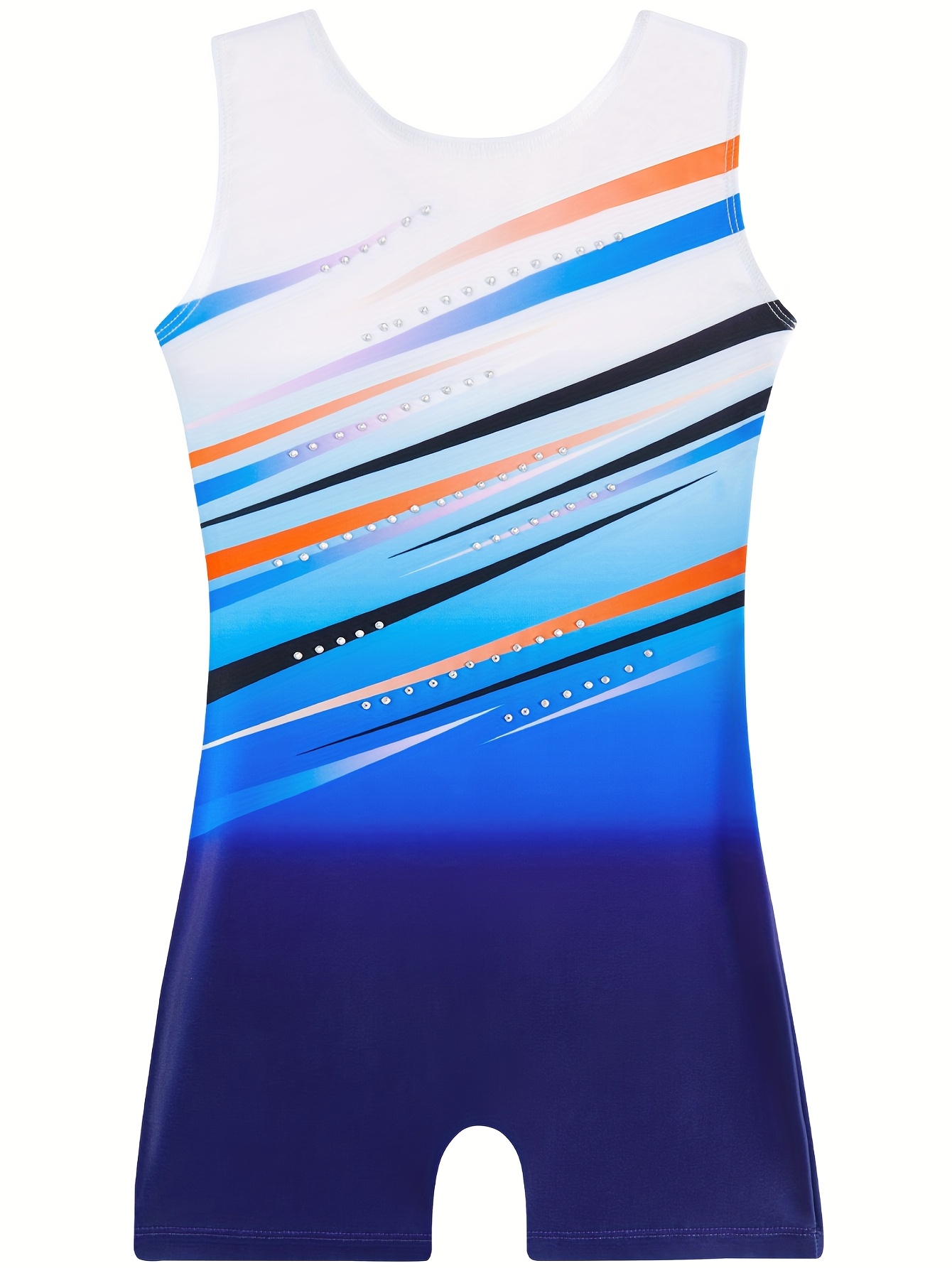 The 2-piece Gymnastics Outfit for Girls combines performance-ready design with a touch of sparkle that every young athlete will love. This sleeveless unitard features a striking gradient sequin pattern and shimmering rhinestones, complemented by a coordinating hairband for a polished, stage-ready look from practice to performance. Why this set stands out