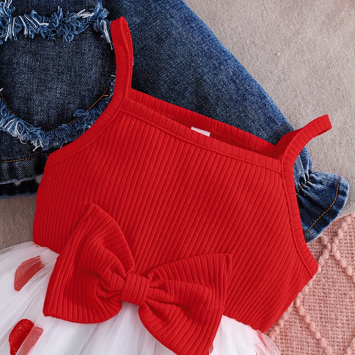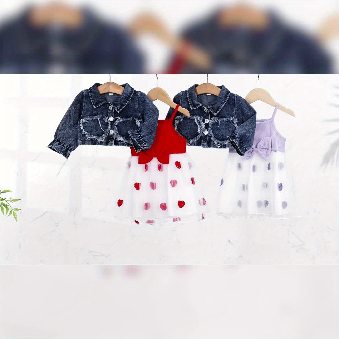 2pcs Toddler Girl Outfit | Stylish Blue Denim Jacket & Adorable Bow Skirt Set | Cozy Jacket with Button Front, Soft Flowy Skirt for Fall Birthday Party, Photoshoot, Casual Wear - Machine Washable Toddler Ensemble, Perfect for