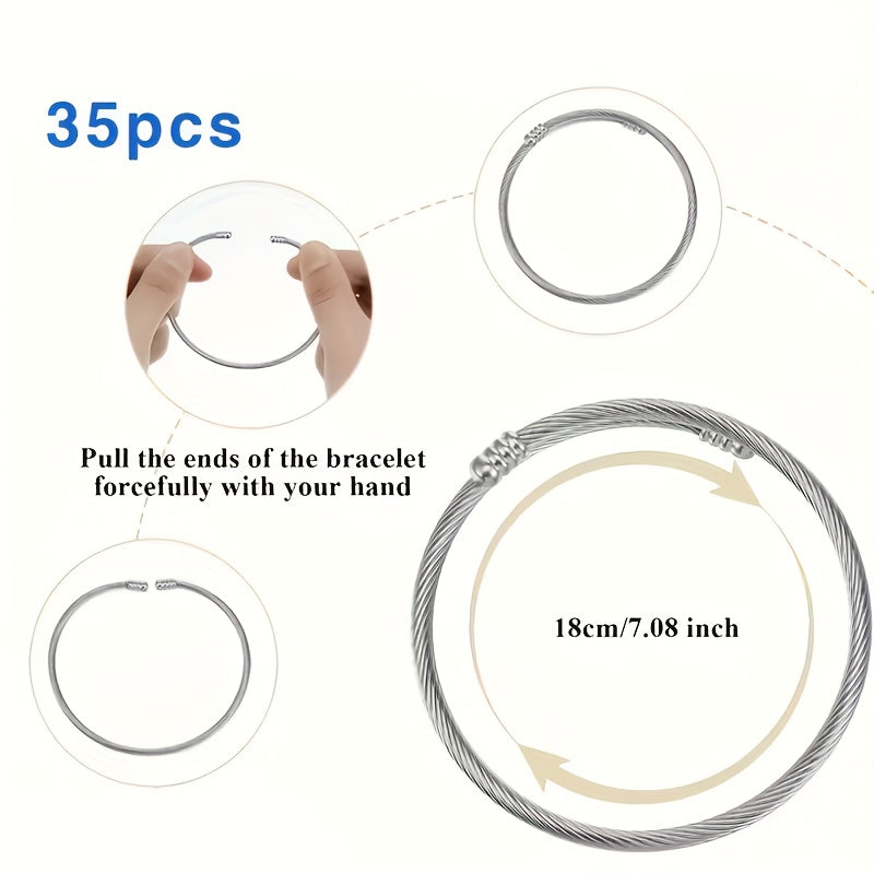 35pcs Silvery Snake Pendant Charm Bracelets - Adjustable Stretchable Elastic Bangle Style Stainless Steel Material, Perfect for DIY Jewelry Making Supplies Suitable for Women And