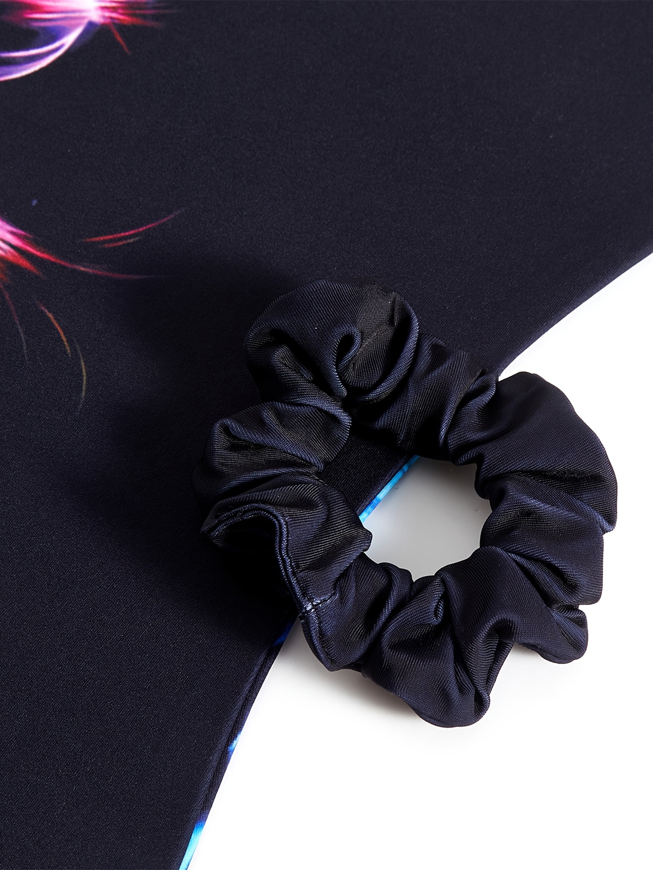 3pcs Girls' Gymnastics Leotard & Shorts Set with Hair Scrunchie - Shiny Gradient & Glittery Cross-Back Dance Outfit, Quick-Dry Spandex/Brittle-like Suit for Tumbling, Ballet, Rhythmic Gymnastics (Ages 3-12) - Multi-Color Opti