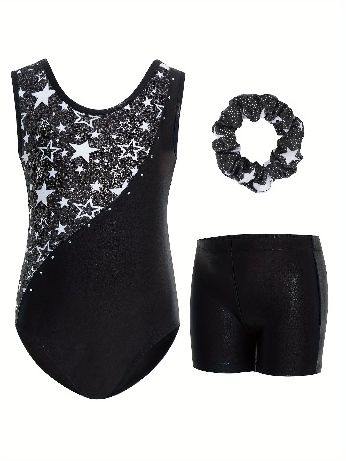 3pcs Gymnastics Leotards For Girls, Sleeveless Kids Dance Unitards Biketards With Shorts And Hair Scrunchie Eid Gifts For Kids, for Outdoor