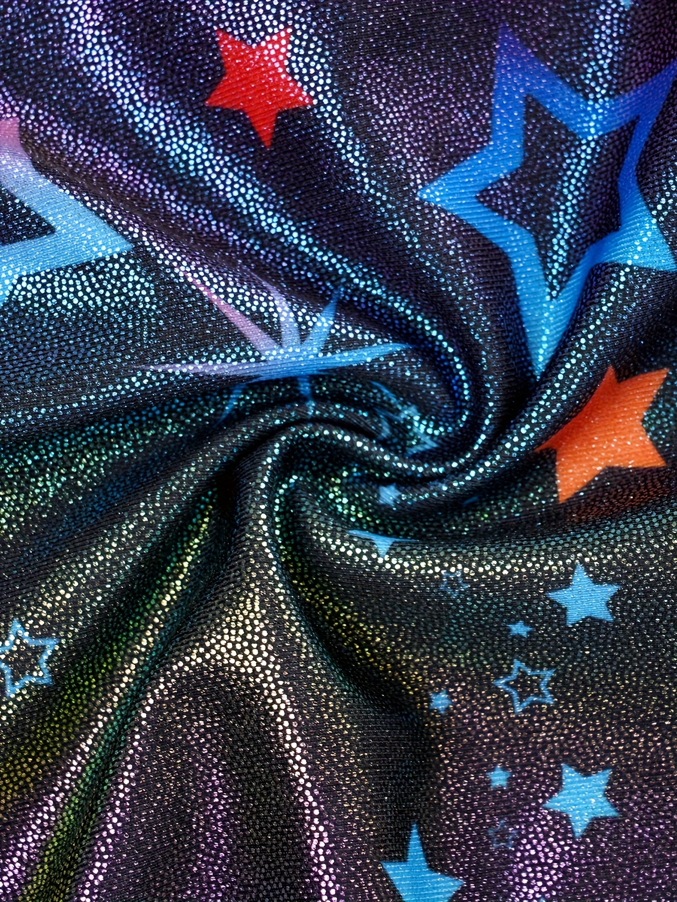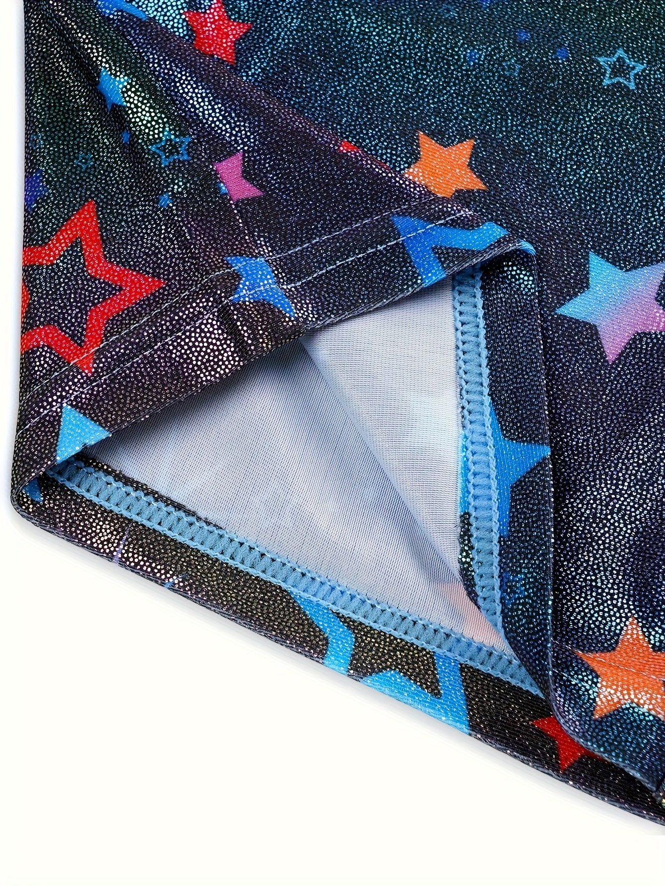 Cute Shiny Style: Girls Gymnastics Leotard, unique Y-shaped neck design with 3D printed pattern of glitter stars to make your girl stand out in the crowd.
