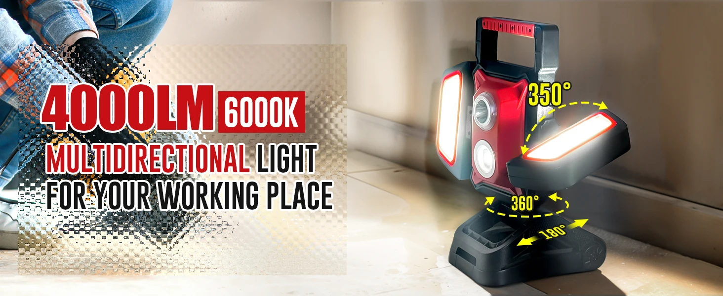 - 3800-lumen COB LED delivers bright, uniform light with a beam distance up to 50 meters and 40W of power for reliability on any job.