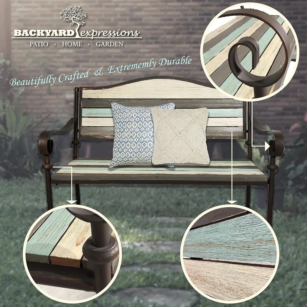 Durable Wrought Iron Patio Bench For Outdoor Garden And Porch Seating