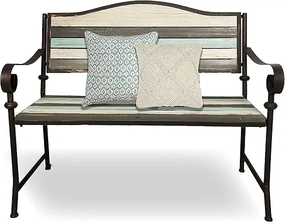 - Rugged outdoor-ready construction: helps you enjoy weather resistance and timeless appeal with a sturdy wrought-iron frame finished in brushed teal, cream, and brown.