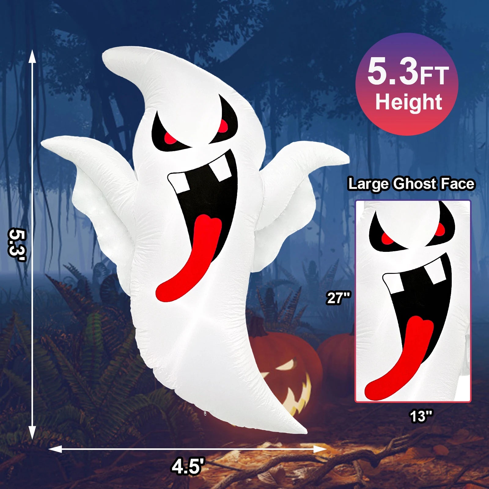 Five Point Three Foot Inflatable Halloween Ghost Foldable Window Display Outdoor Garden Decoration For Halloween Party