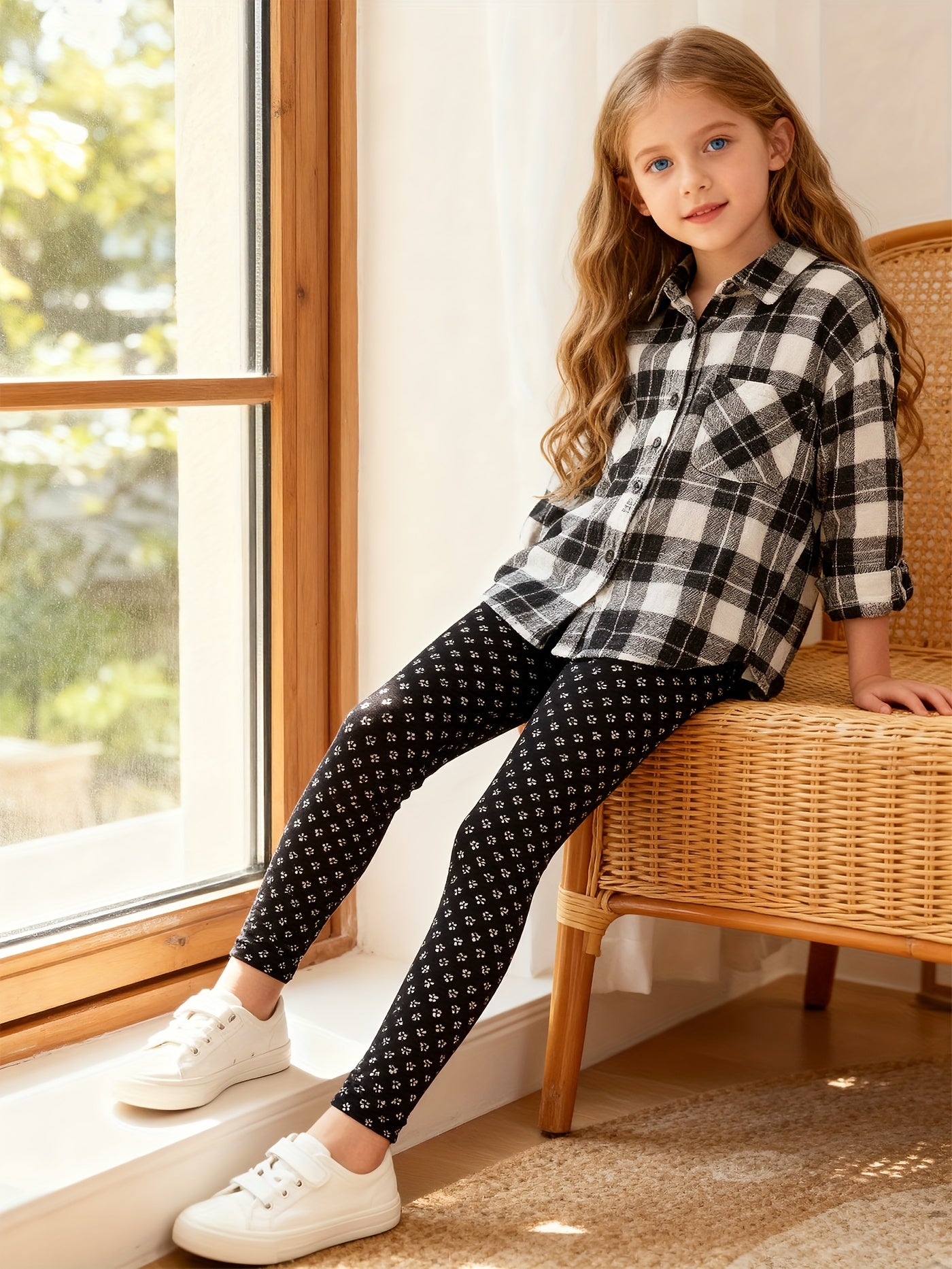 Ideal for: girls 12 and under who love playful prints and need dependable leggings that keep up with dance rehearsals, gym sessions, or everyday adventures. The cropped length flatters a range of heights, and the skin-friendly fabric makes it comfortable for all-day wear.