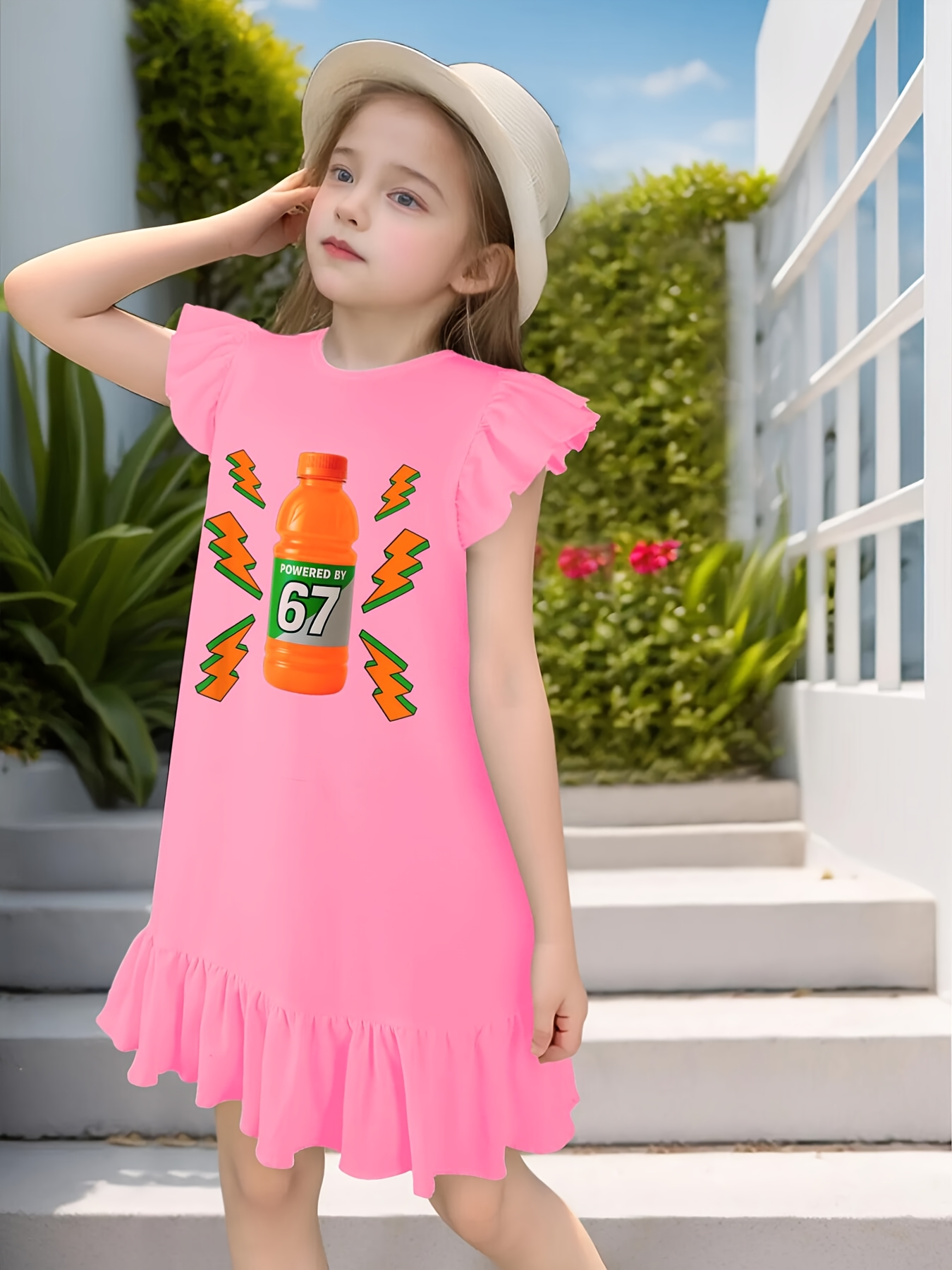 Meet the 6&7 Meme Number-Themed Flutter Sleeve Dress—a playful, mid-length pick designed for curious minds and curious wardrobes. Crafted for children over 3 years old, this dress brings a cheeky, Gen Alpha-friendly vibe with a 6&7 meme-number motif and a standout Six Seven Gen Alpha logo applique that adds a touch of whimsy without compromising everyday wearability.