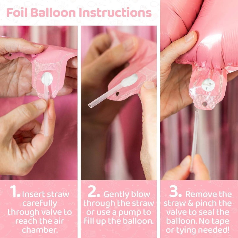 - Inflate the numeric balloons to display the age or year, then place the crown, lipstick, and champagne bottle shapes for a playful, themed vignette.