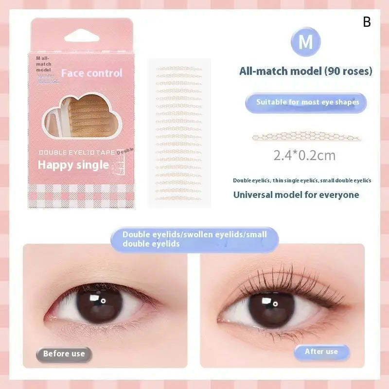 90/240 PCS Double Eyelid Stickers transform droopy, hooded eyelids into beautifully defined double eyelids with an invisible lift you can trust. Designed for single eyelid wearers seeking a natural enhancement, these strips deliver an eye-opening effect that stays put from morning meetings to late nights.