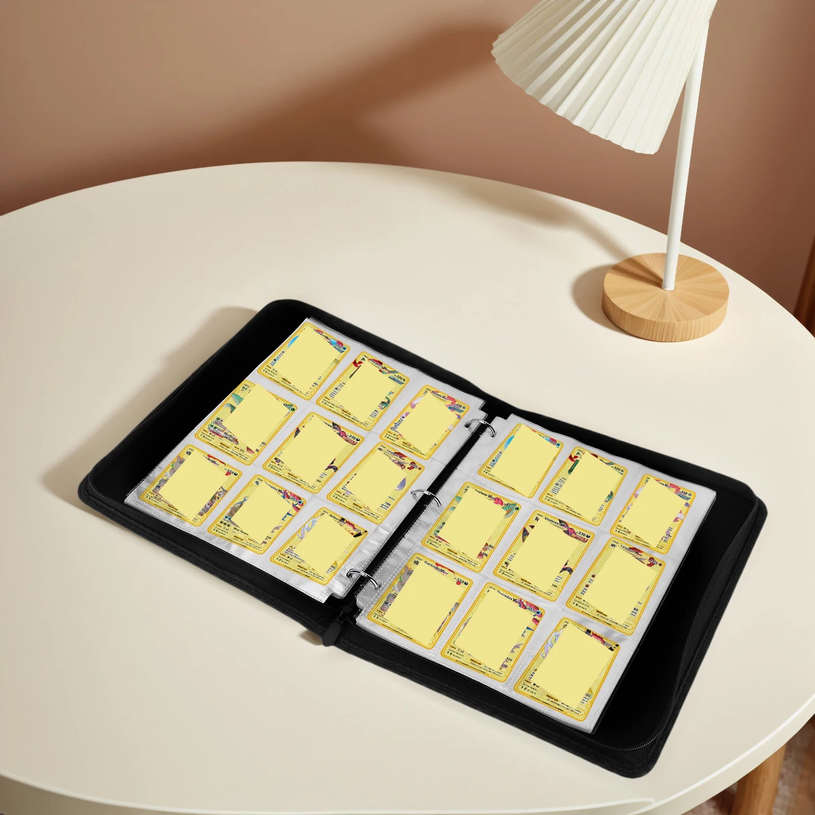 Features: 1.Large Capacity and Easy Organization: Featuring 9 pockets per page and 50 pages, this pockets card binder provides up to 900 slots for your collection. Removable double-sided sleeves and clear windows make it easy to identify cards quickly and keep them well-organized. 2.Universal Card Compatibility: Designed to fit for PKM, for MTG, for TCG trading cards, sports cards, 3.7*2.6 inch cards, and other standard-sized cards (card box only). The cards colletction album ensures safe and orderly storage for all your collecting needs. 3.Premium Materials for Long-Lasting Use: Constructed with thickened high-quality PU leather and transparent PVC polypropylene sleeves, this trading card binder resists tearing, fading, and stains - making it a must-have for collectors. 4.Secure Side-Loading Pockets: The collection binder folder features side-entry pockets for maximum card protection. A smooth, enduring zipper keeps the binder closed and cards secure, preventing any accidental spills. 5.Excellent Gift & Portable Design: This card album is an ideal gift for enthusiasts and collectors, loved by both boys and girls. Its lightweight design and quality wrist strap ensure convenient carrying anywhere you go. Specification: Origin: Mainland China Product Type: PU Zipper Card Book Material: Plain PU Leather + PVC Polypropylene Dimensions: Approximately 35 x 27.5 cm Gender Applicable: Unisex / Unisex Useful for: Home Storage