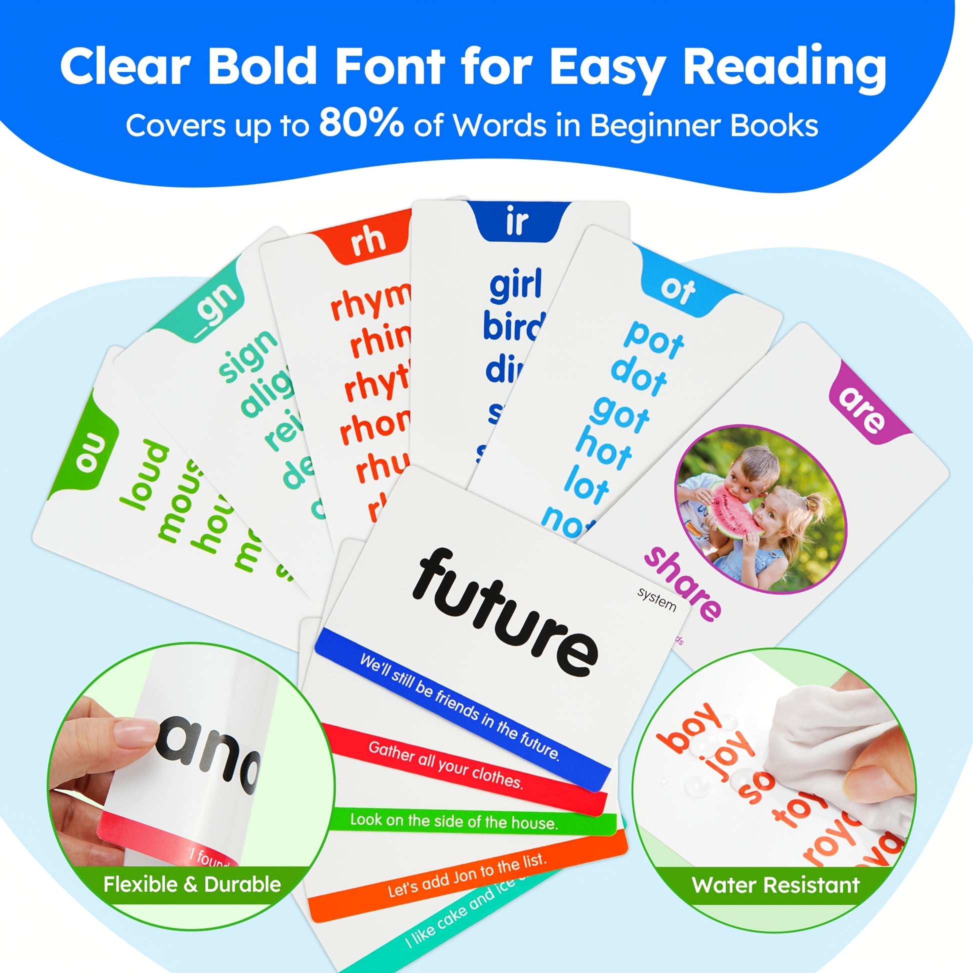 BenBen 500 Sight Words & 150 Phonics Flash Cards/1000+ Words, Learn to Read CVC, Blends, Long Vowel Words Sounds, Dolch & Fry High Frequency Sight Words for Pre - Primer Kindergarten 1st 2nd 3rd Grade Kids Ages 3-9, 24 Phonic