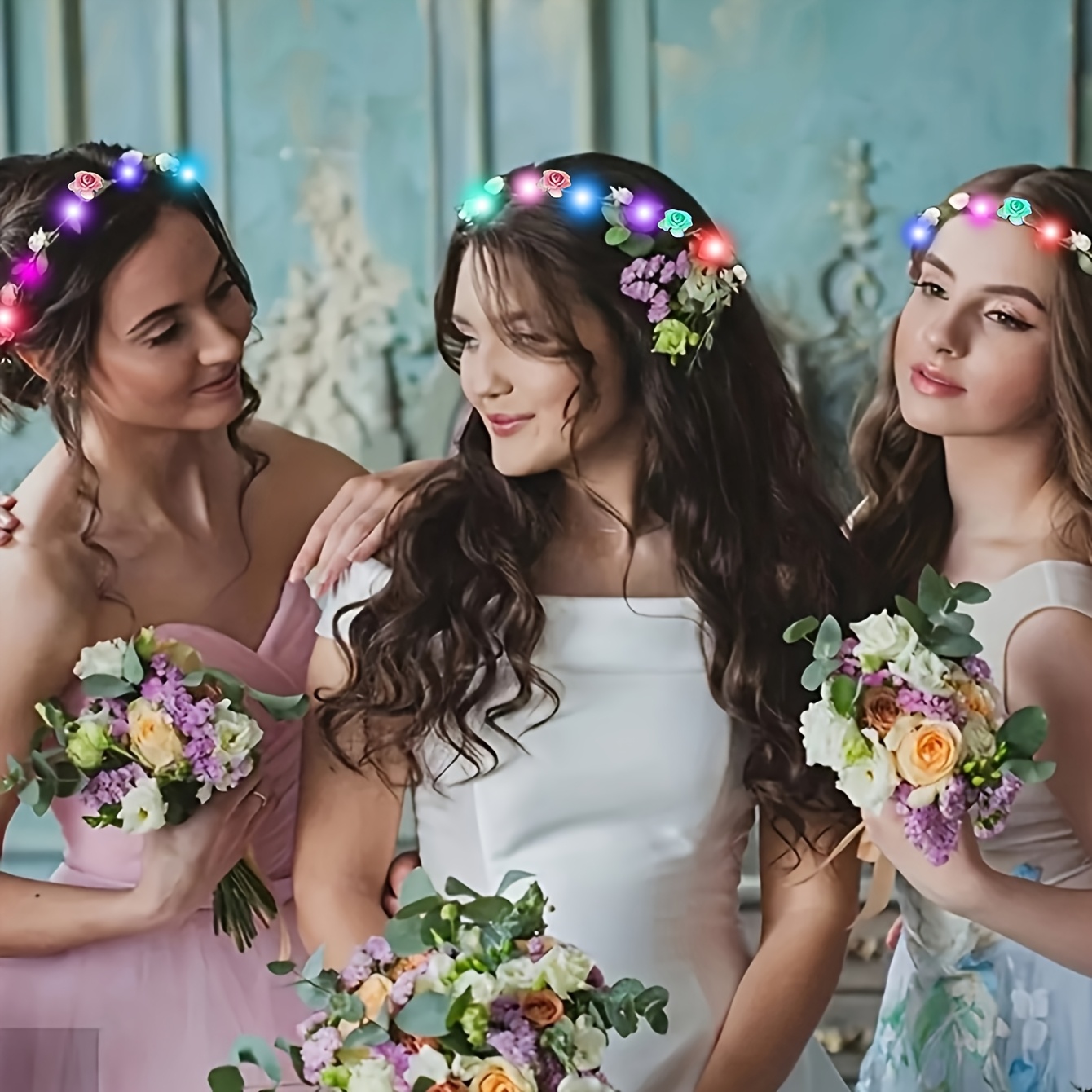 [Bohemian LED Flowers] 20pcs Bohemian LED Flowers with Braided Headband - Green Rattan & Paper Flowers (Random Color) - for Wedding, Party, Cosplay, Christmas, Birthday, Holiday, Photography, Camping, Glow, Concert