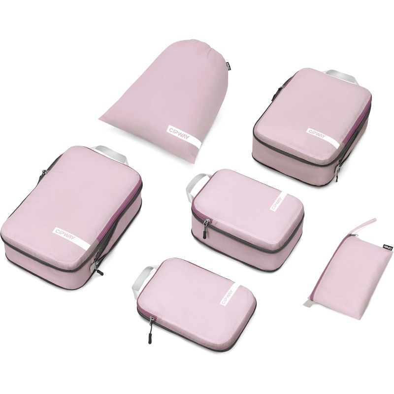 Cipway Compression Packing Cubes for Travel Ultralight Expandable Packing Organizers with Laundry and Toiletry Bag for Carry on Luggage Mauve Pink 6 Set