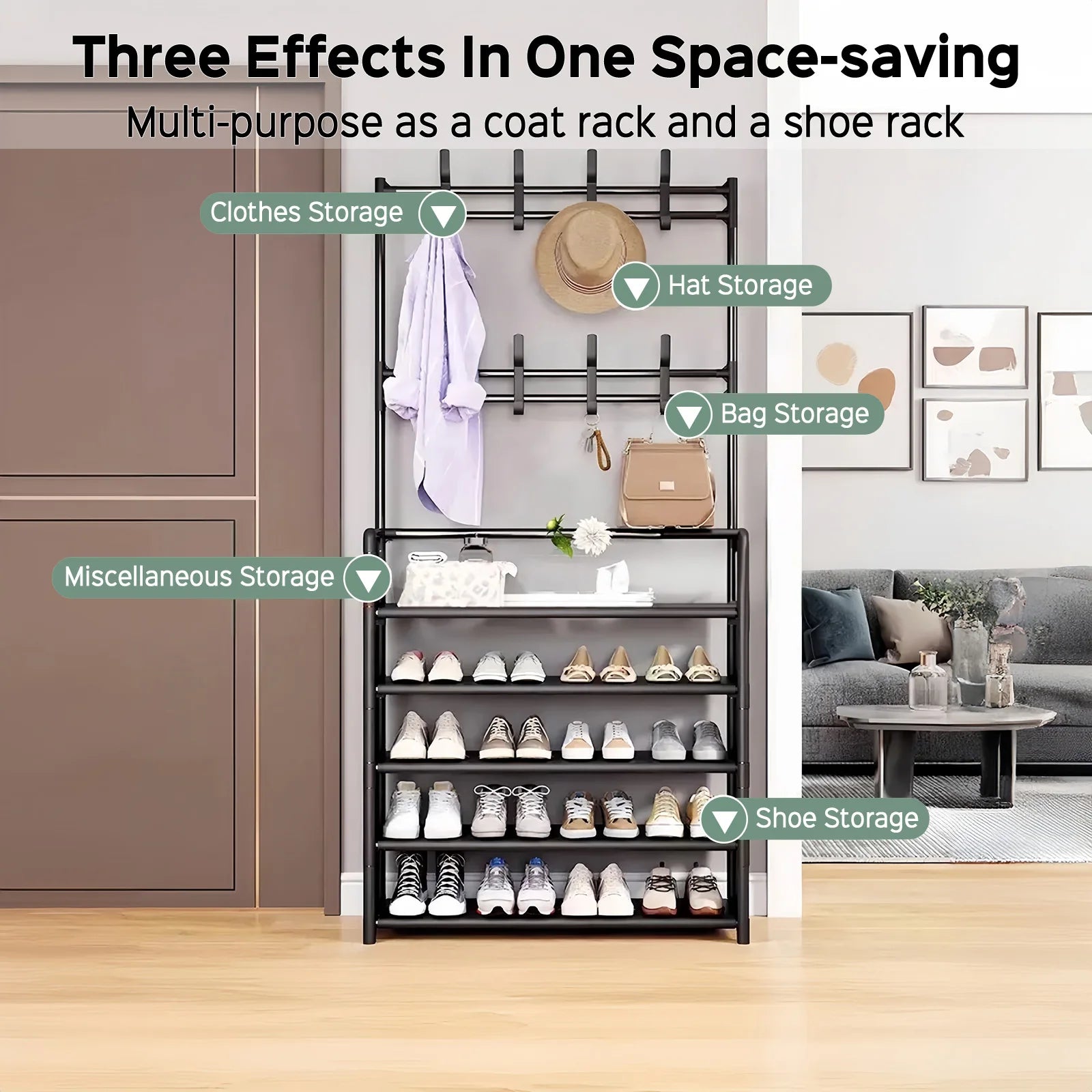 Hign-concerned 3-in-1 Coat Rack With Shoe Organizer And Hooks