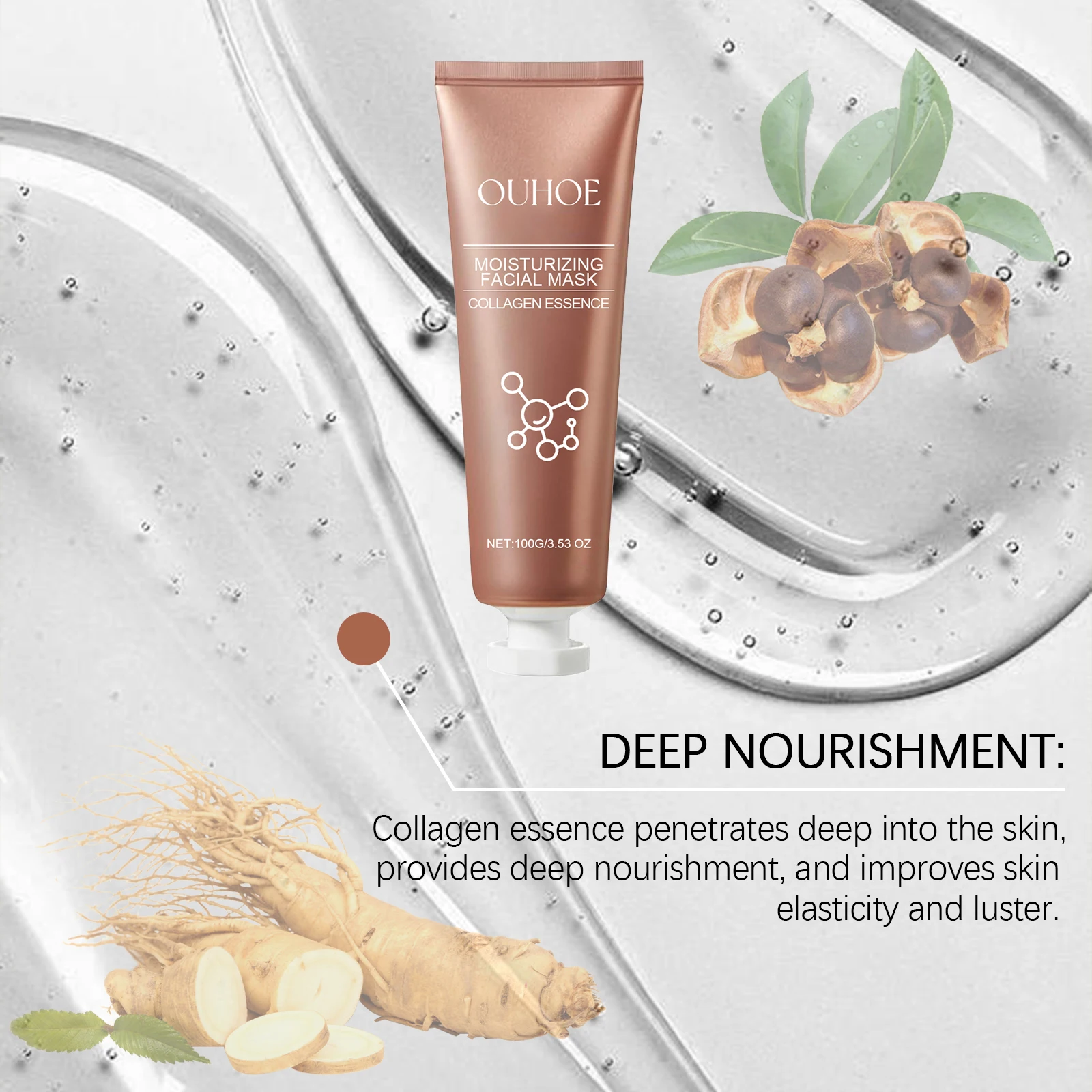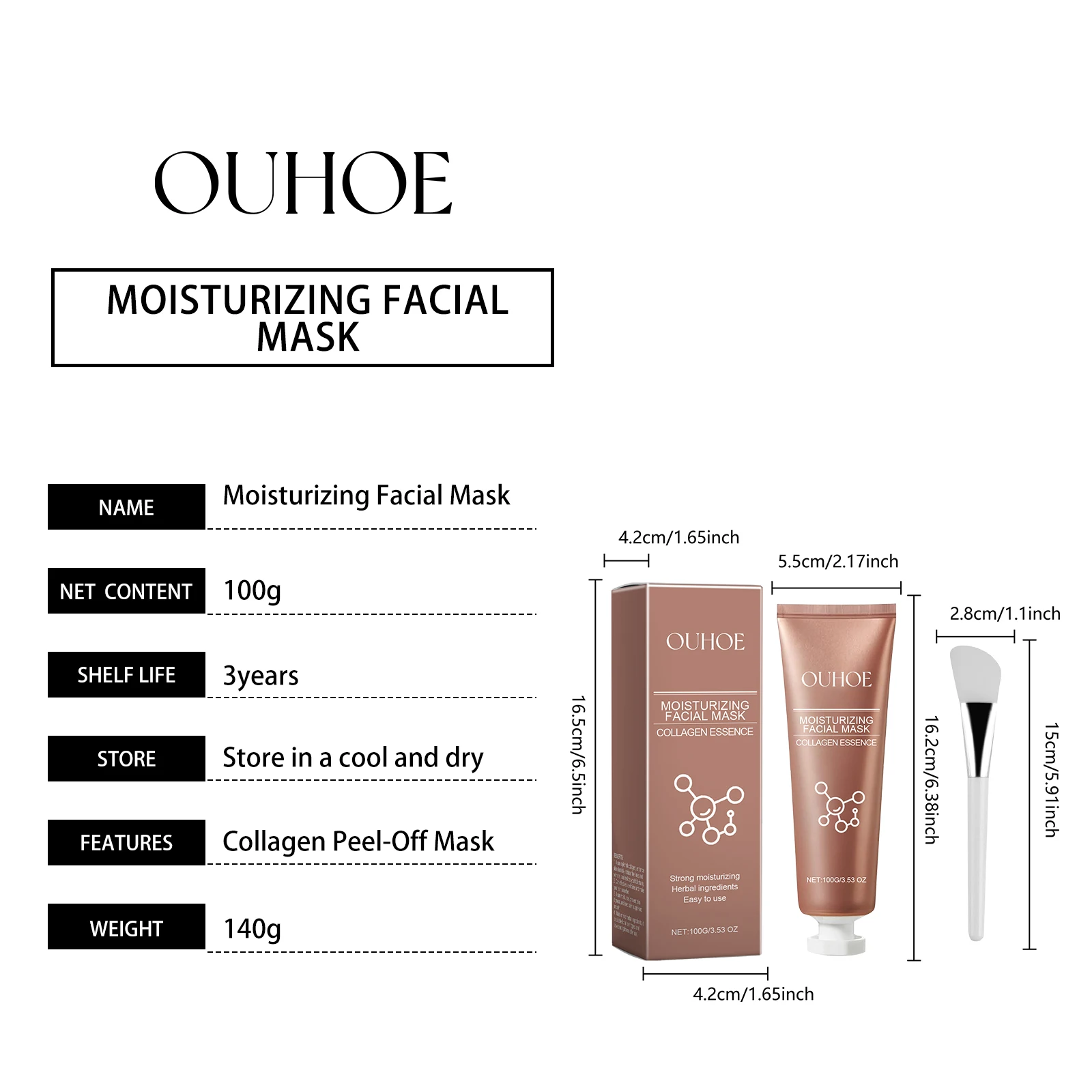 Our collagen peeling mask contains glycerin, sodium hyaluronate, coffee extract. It can reduce blackheads, purify pores, and improve skin problems. Strengthen the skin barrier and enhance skin resistance. The unique formula promotes skin firmness, reduces fine lines and wrinkles, and restores youth. It is very simple to use: 1. First, thoroughly clean and dry the facial skin. 2. Use the applicator stick to take an appropriate amount of this product and apply it evenly on the face. 3. Wait for 15-20 minutes and gently peel off the mask. The collagen peeling mask is mild, safe and reliable, and contains no harmful chemicals. Improve the skin's absorption capacity and enhance the subsequent skin care effects.