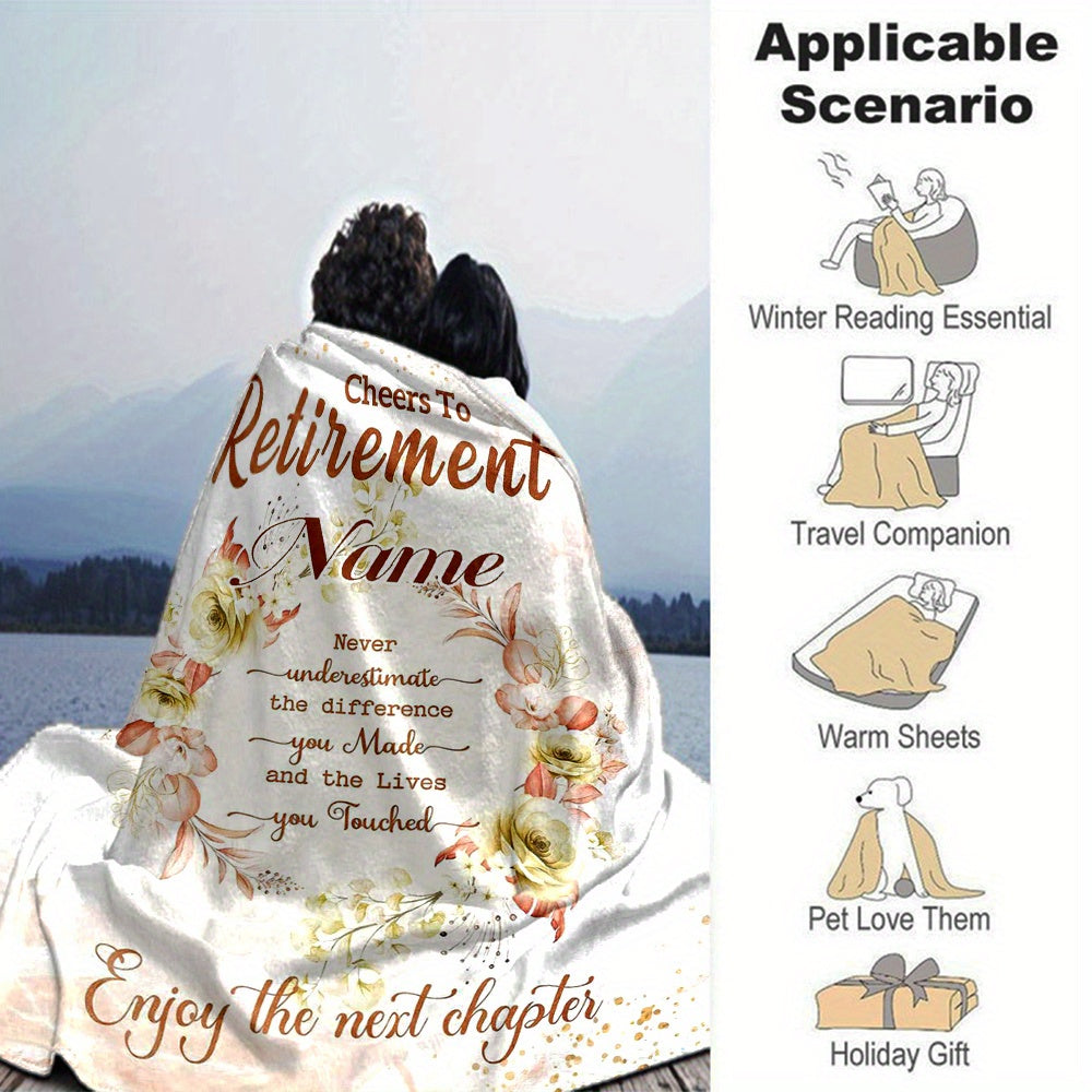 Customizable Retirement Celebration Blanket - Cozy Polyester Throw with Inspirational Message, Digital Print, All-Season Knit Fabric for Living Room, Bedroom, Sofa, or Camping, Retirement Gifts