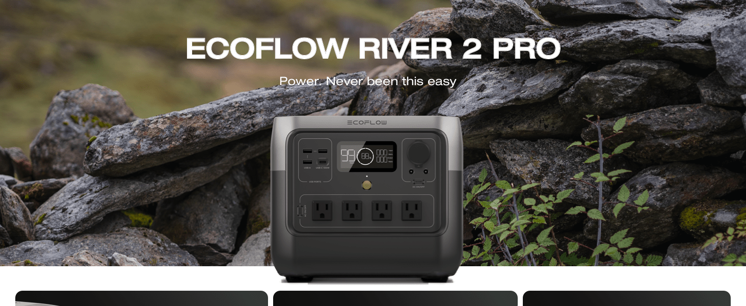 EcoFlow Portable Power Station RIVER 2 Pro 700, 716Wh LiFePO4 Battery, 70 Min Fast Charging, 4X800W AC Outlets, Solar Power Bank for Outdoor Camping/RVs/Home Use Black (Solar Panel Optional)