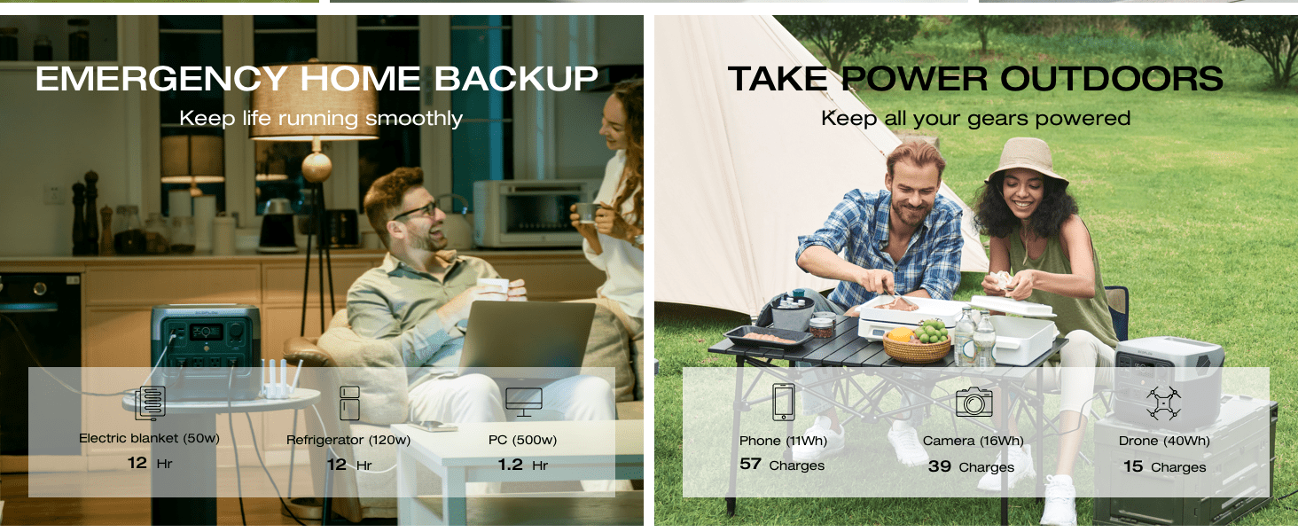 · Provide up to 1.8kWh a day with solar charging; X-Boost output to 1600W and run 80% of home appliances •4 ways to charge: AC, car, solar, and USB-C