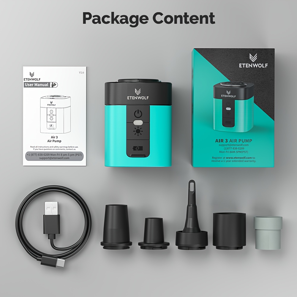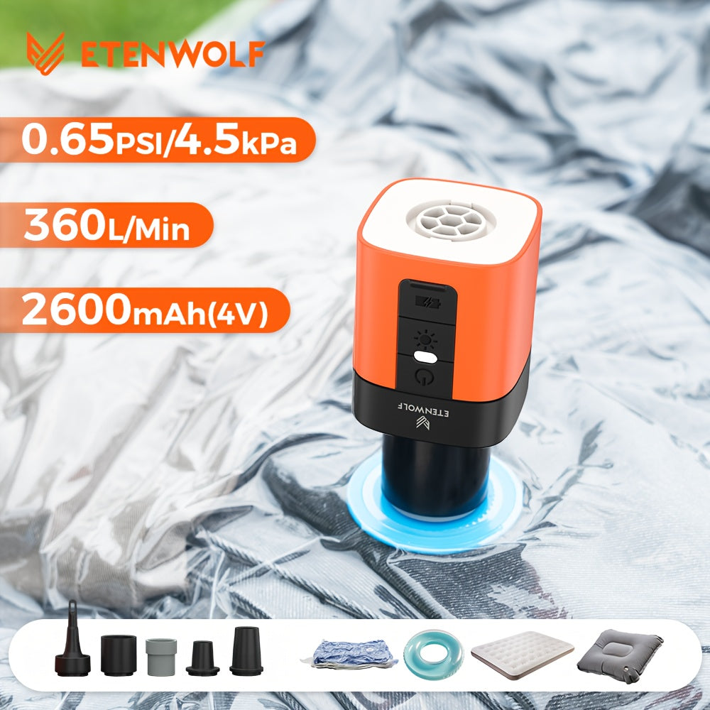ETENWOLF Portable Air Pump 2600mAh Battery & Camping Light Mini Air Pump for Air Mattress, Pool Floats, Vacuum Storage Bags USB Charging, Compact Keychain Design for Travel, Camping & Outdoor Gear, Camping Must Haves, Camping
