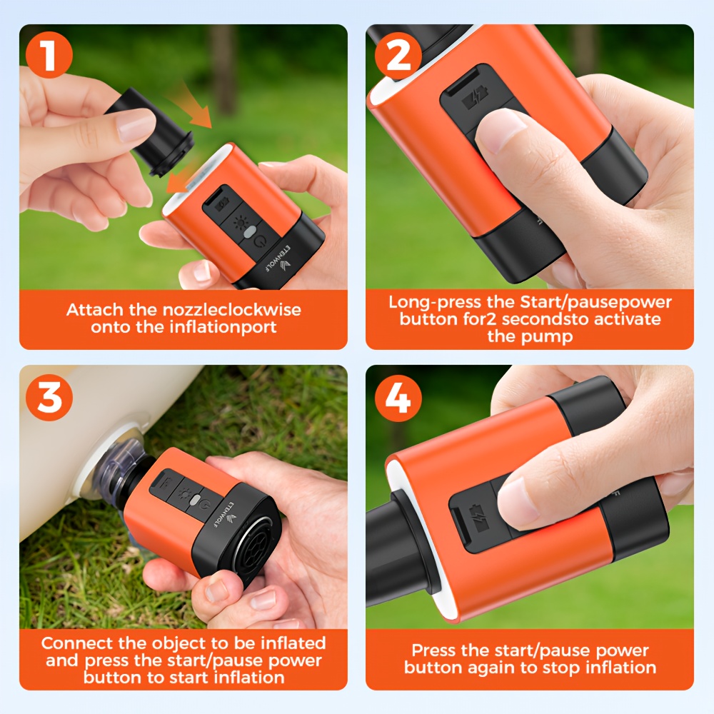 Attention: Must unplug the charger to operate!Not suitable for bicycles, balls, balloons, SUP, or tires.