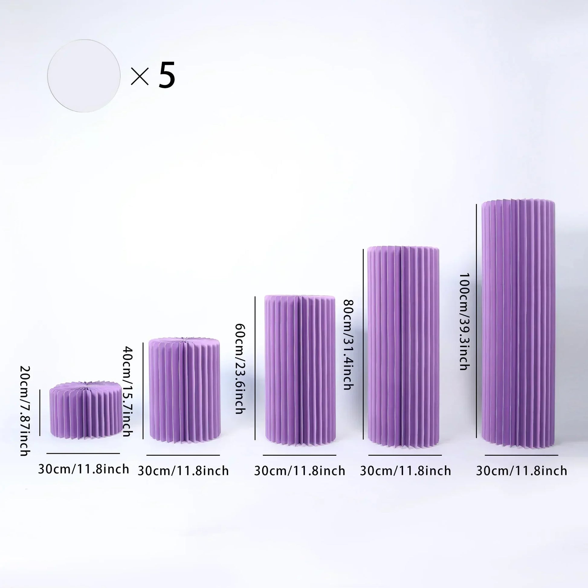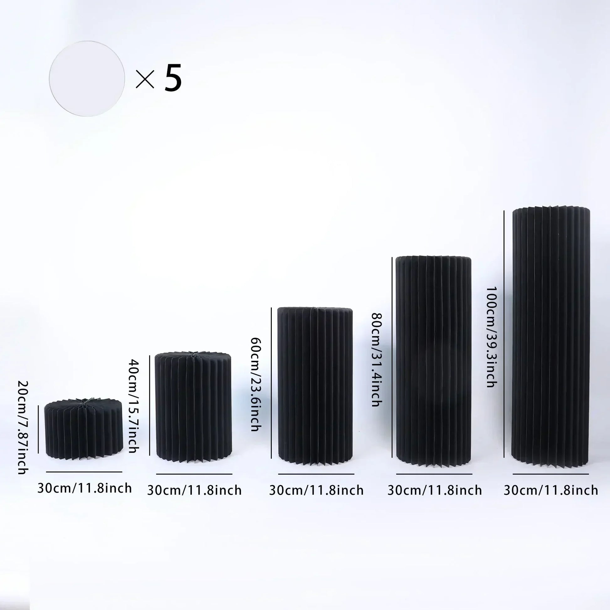 - Size versatility: diameter about 30 cm (11.8 in) with height options of 20, 40, 60, 80, and 100 cm to fit your tables, stages, or arches.