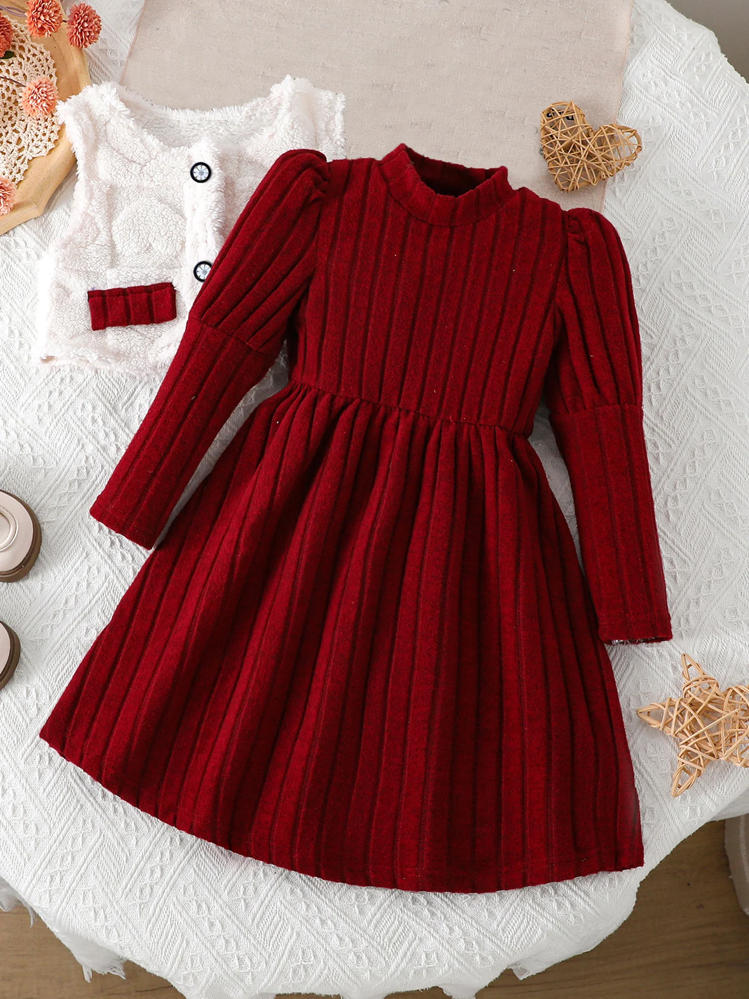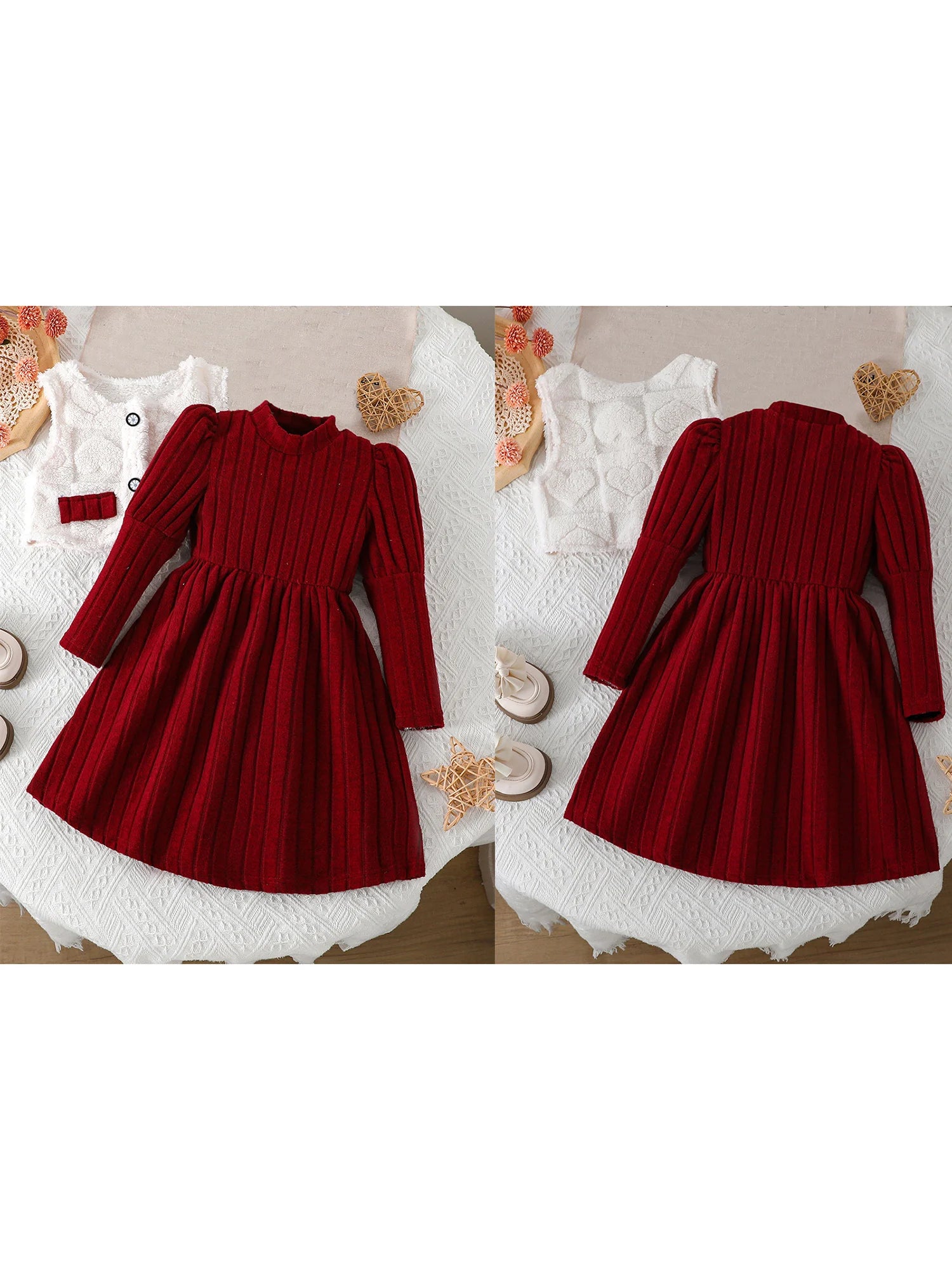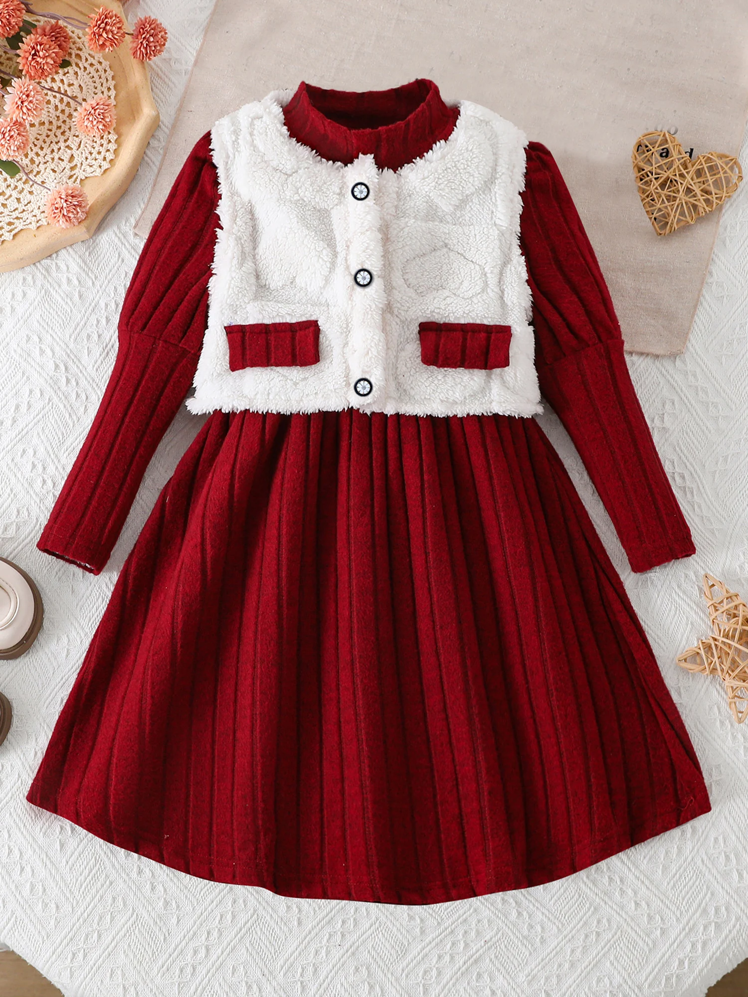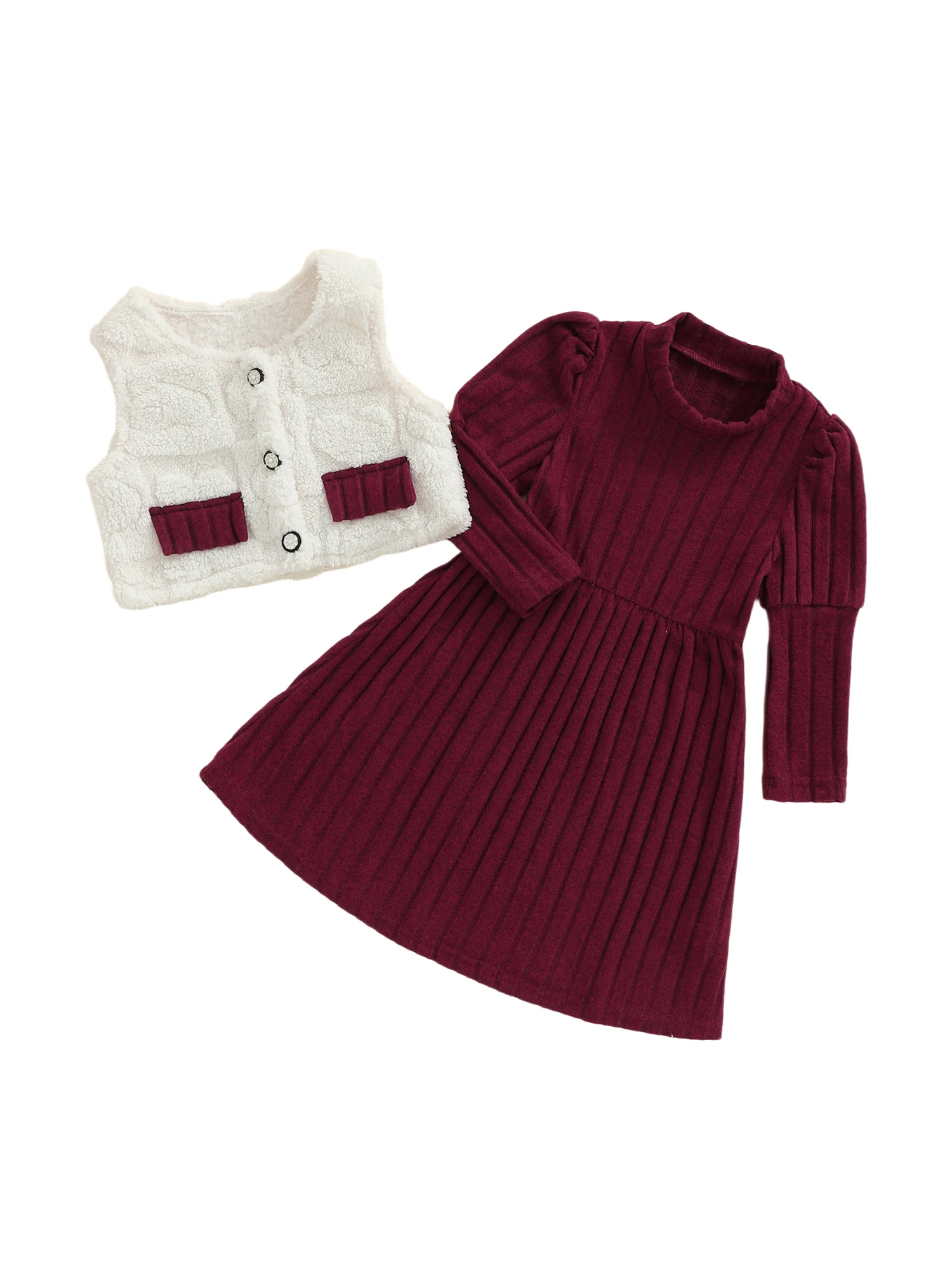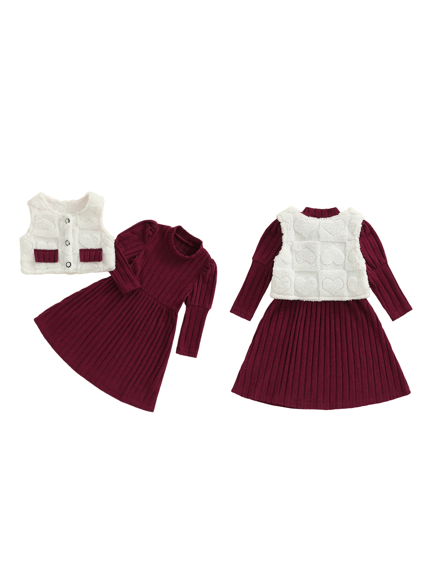 - This two-piece set gives you a cozy dress and a faux-fur hooded vest coat, designed for easy layering and a true-to-size fit that moves with your child.