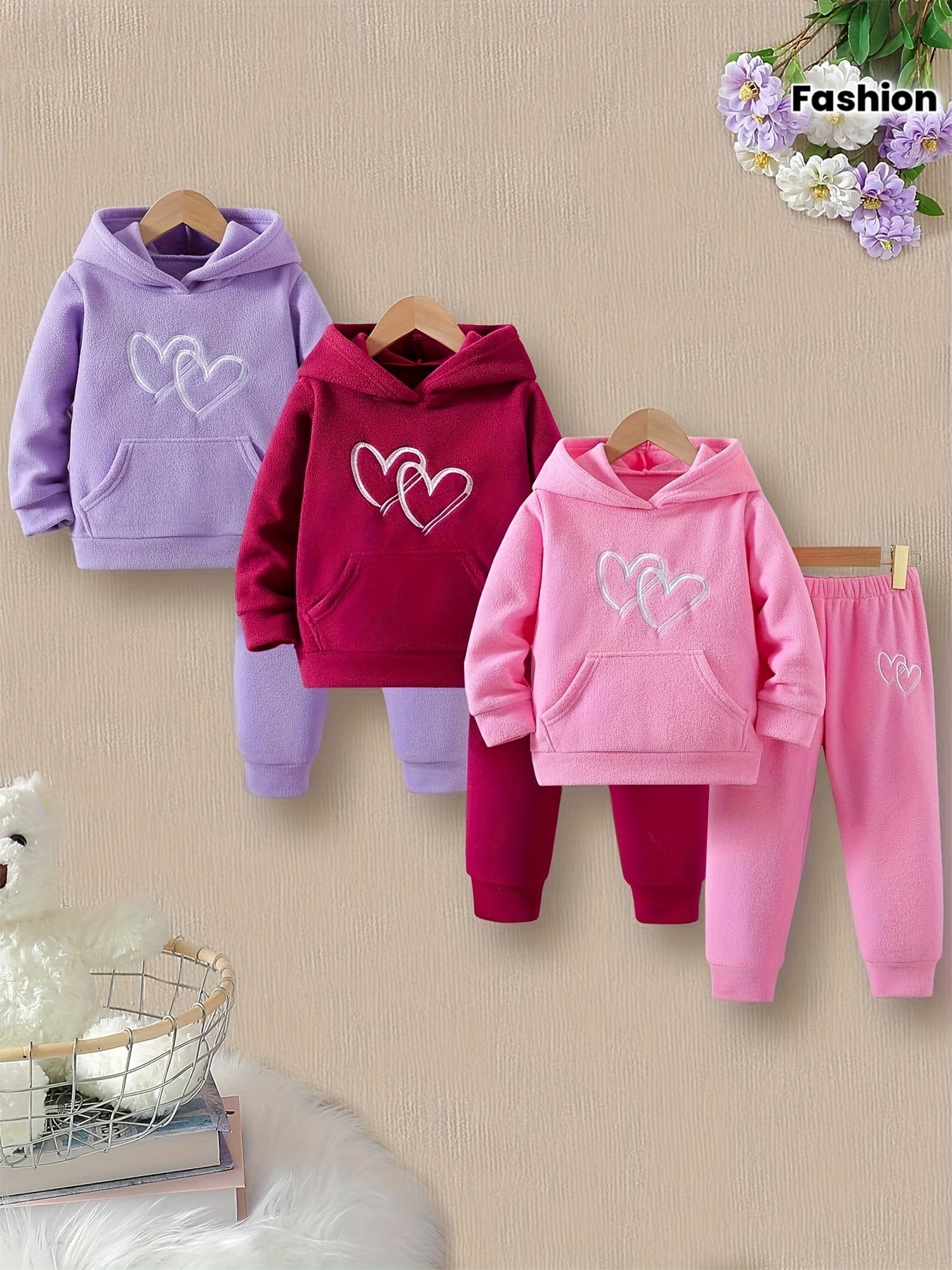 Girls' Autumn And Winter New Style Multi-set Love Pattern Simple Fashion Trend Hoodie Long Sleeve Long Pants Three Sets Suitable for Outdoor Scenes to Wear, Perfect for Outdoor