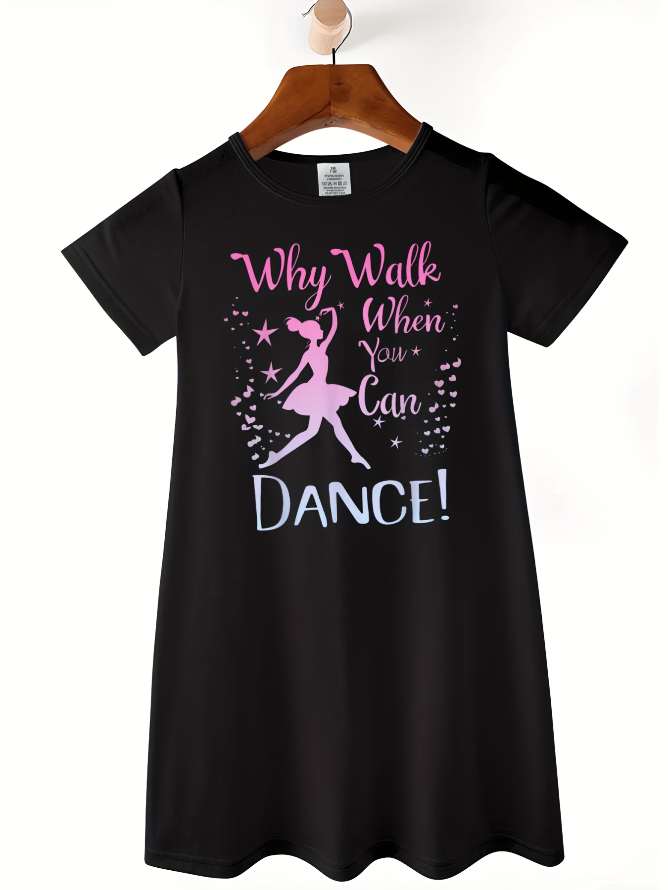 Girls Ballet Dance Recital Outfit - Pink tutu-like dress with "Why Walk When You Can Dance!" Phrase, Stretchy Knit tutu party dress for Ballet Performances, Photo Shoots - Machine Washable Birthday Girl Dance, Ballet Dress, C