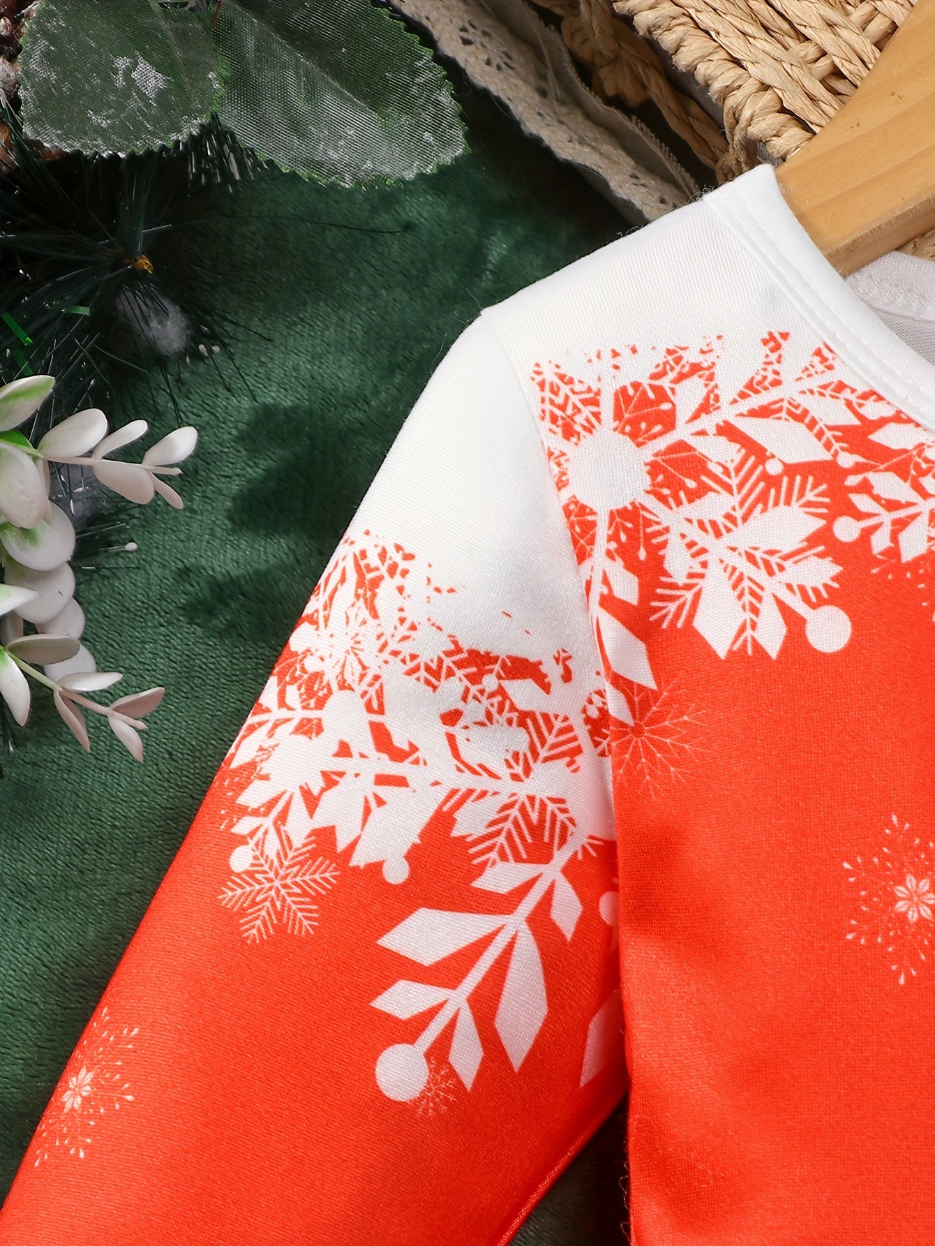 Toddler Girls Christmas Long Sleeve Dress With Snowman Reindeer Pattern