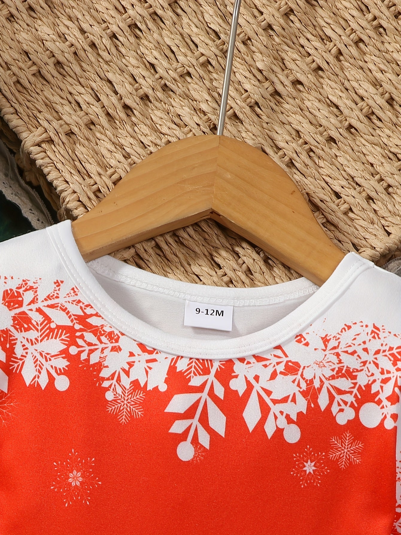 Make every holiday moment sparkle in this adorable toddler girls Christmas dress with snowman and reindeer pattern.