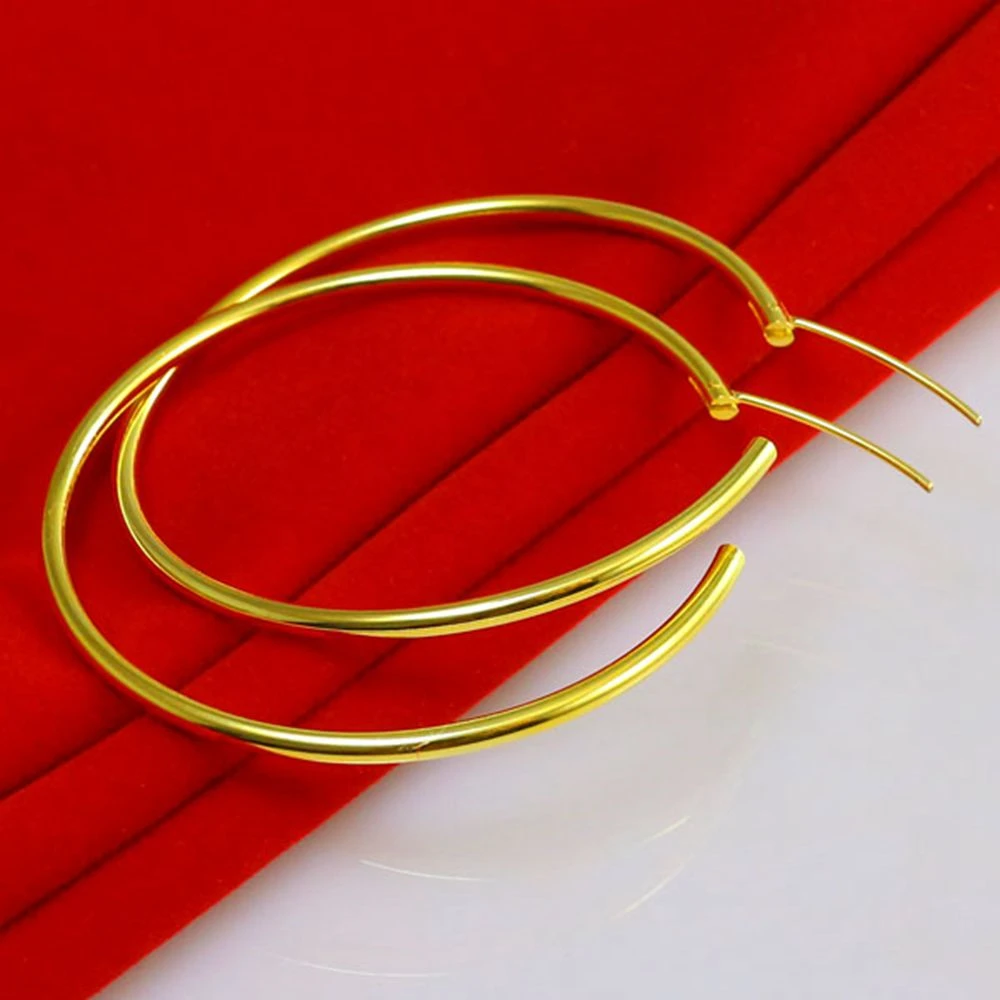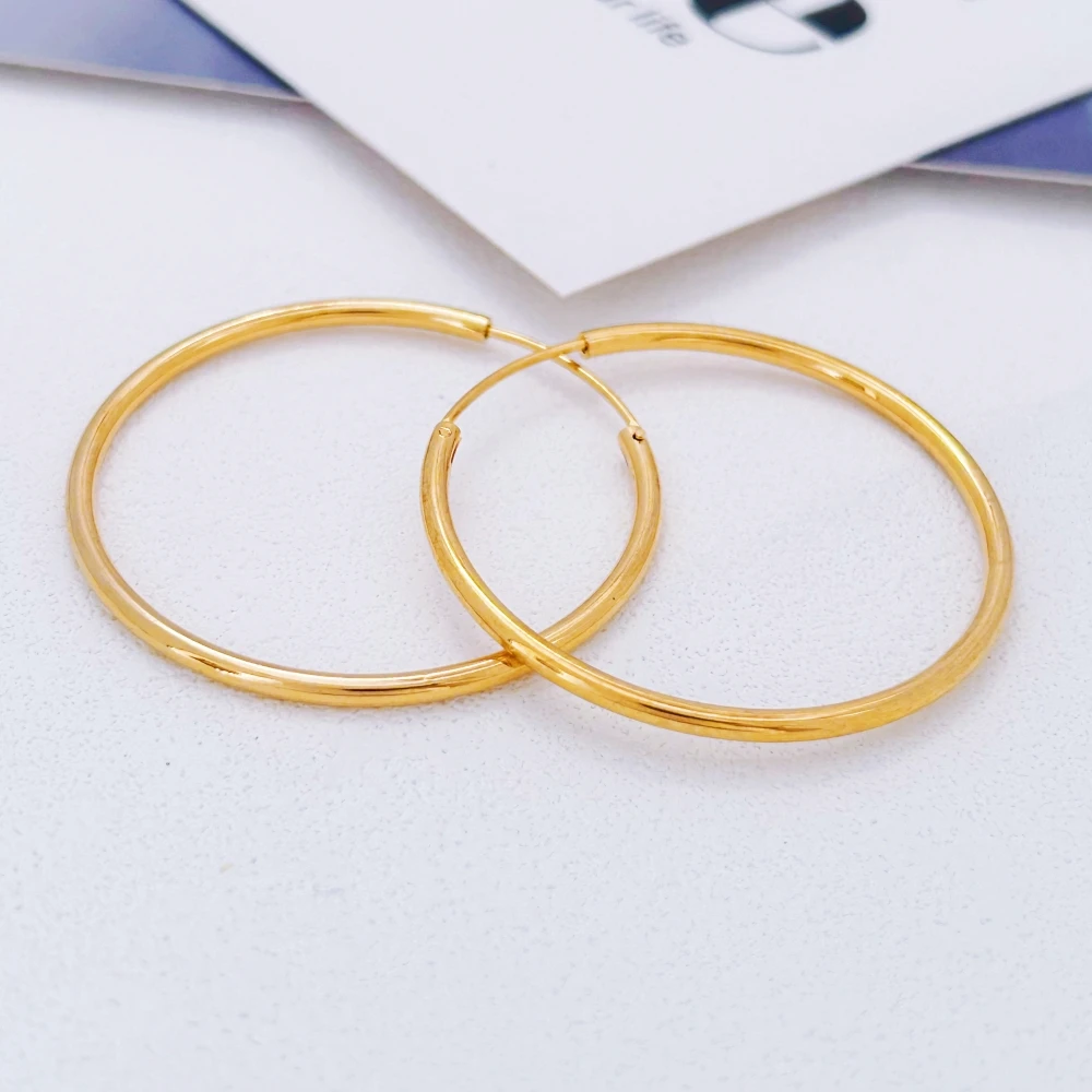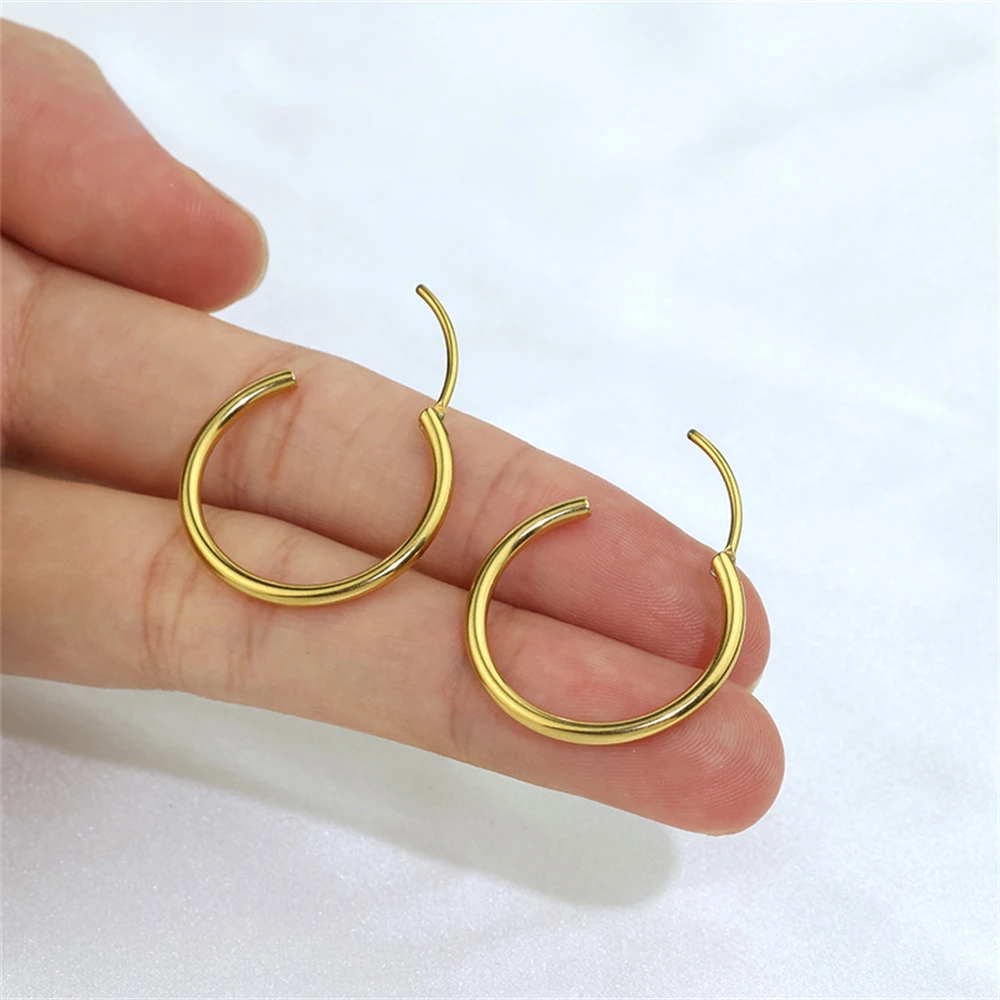 Gold Plated Smooth Round Circle Big Hoop Earrings for Women Size 12/25/30/40/50/60mm Stainless Steel Jewelry Accessories Gifts