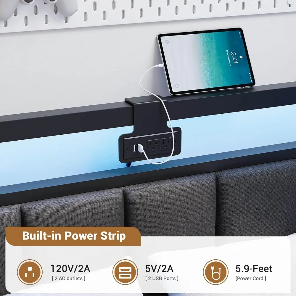 - Charging station on the bedside with 2 AC outlets and 2 USB ports powers phones, tablets, and headphones without leaving bed—and automatic shutoff to protect your devices.