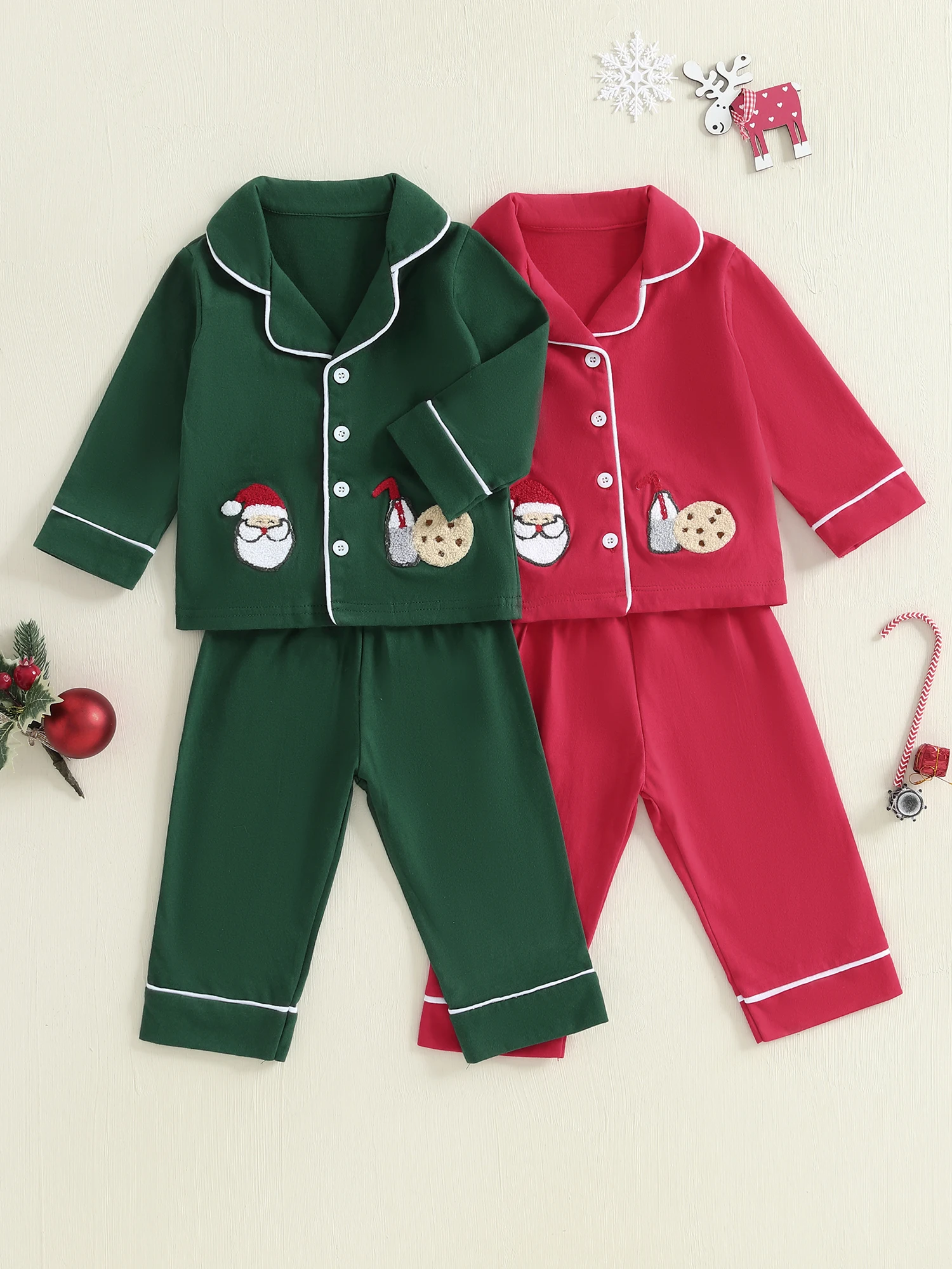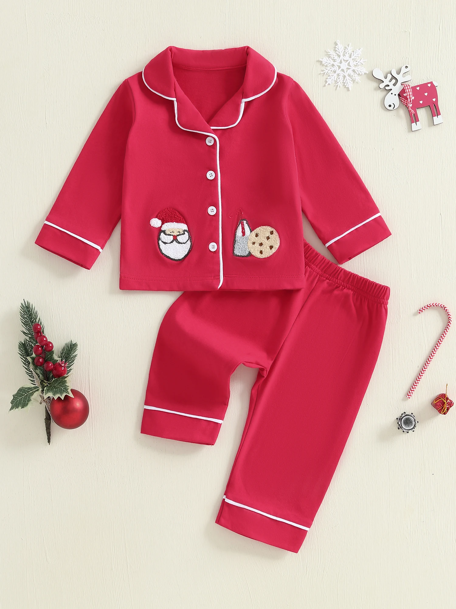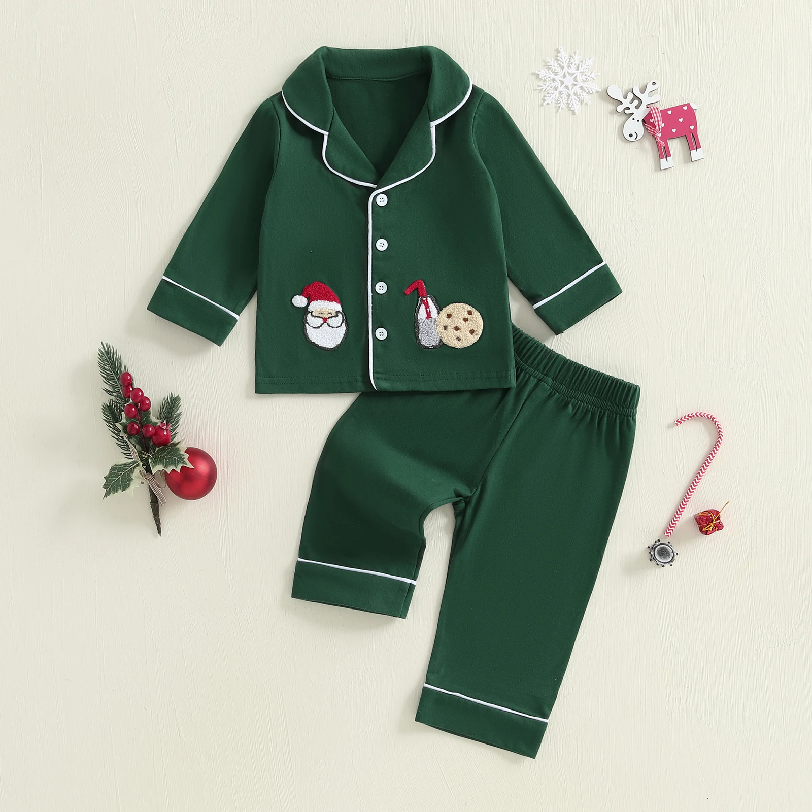 Toddler 2Pcs Christmas Pajamas Long Sleeve Santa Embroidery Shirt and Pants Set Baby LoungewearFeatures: