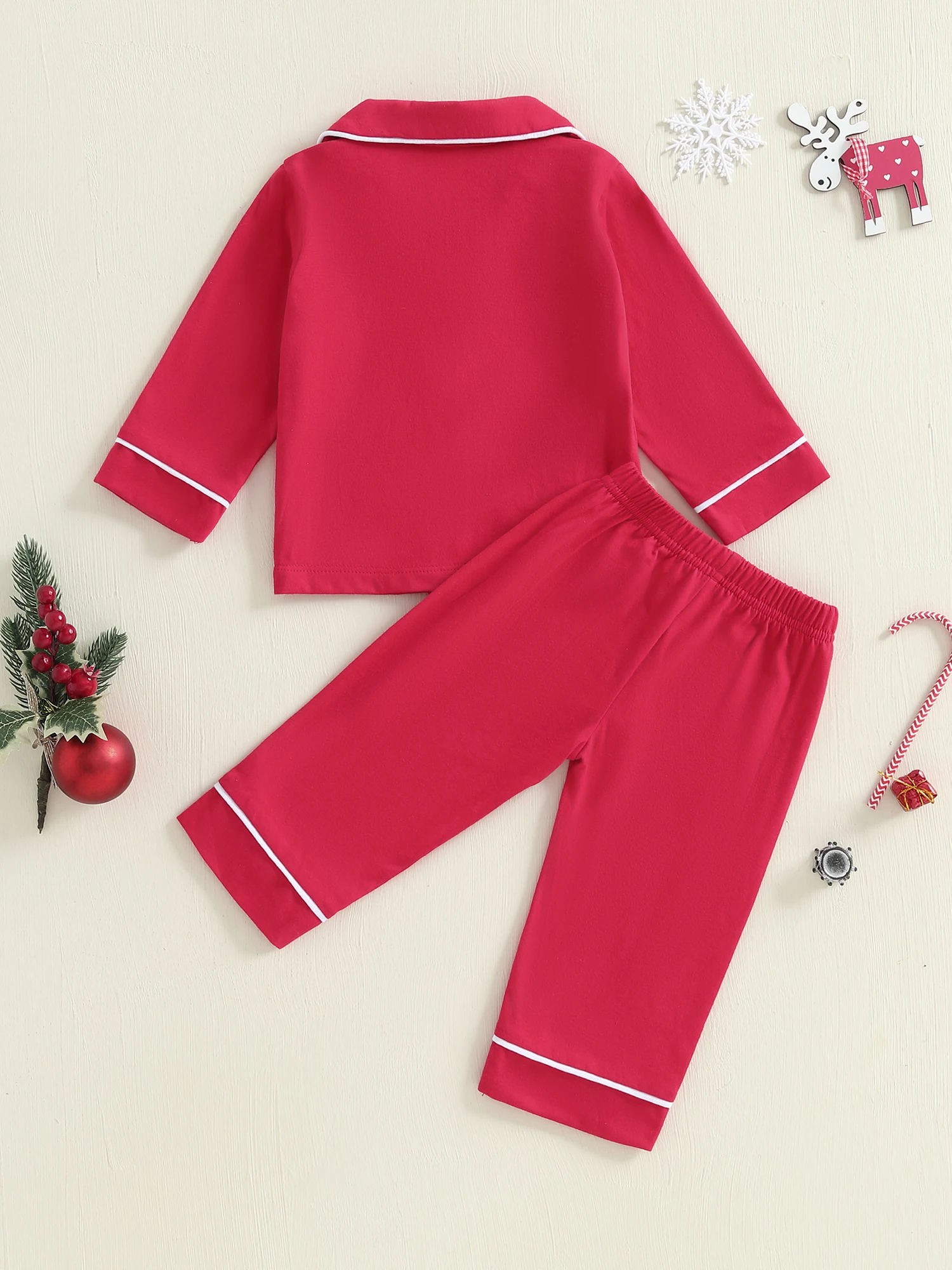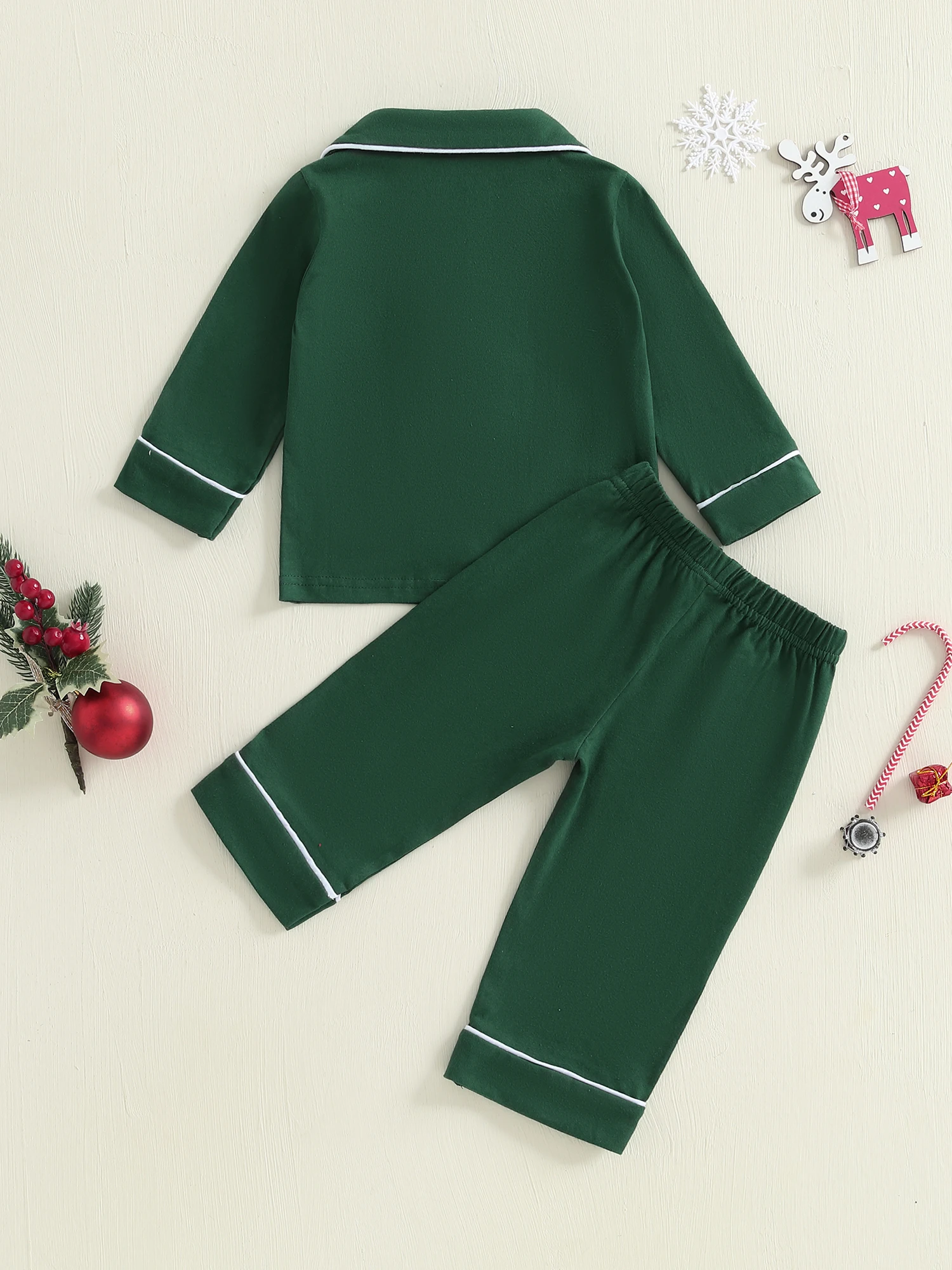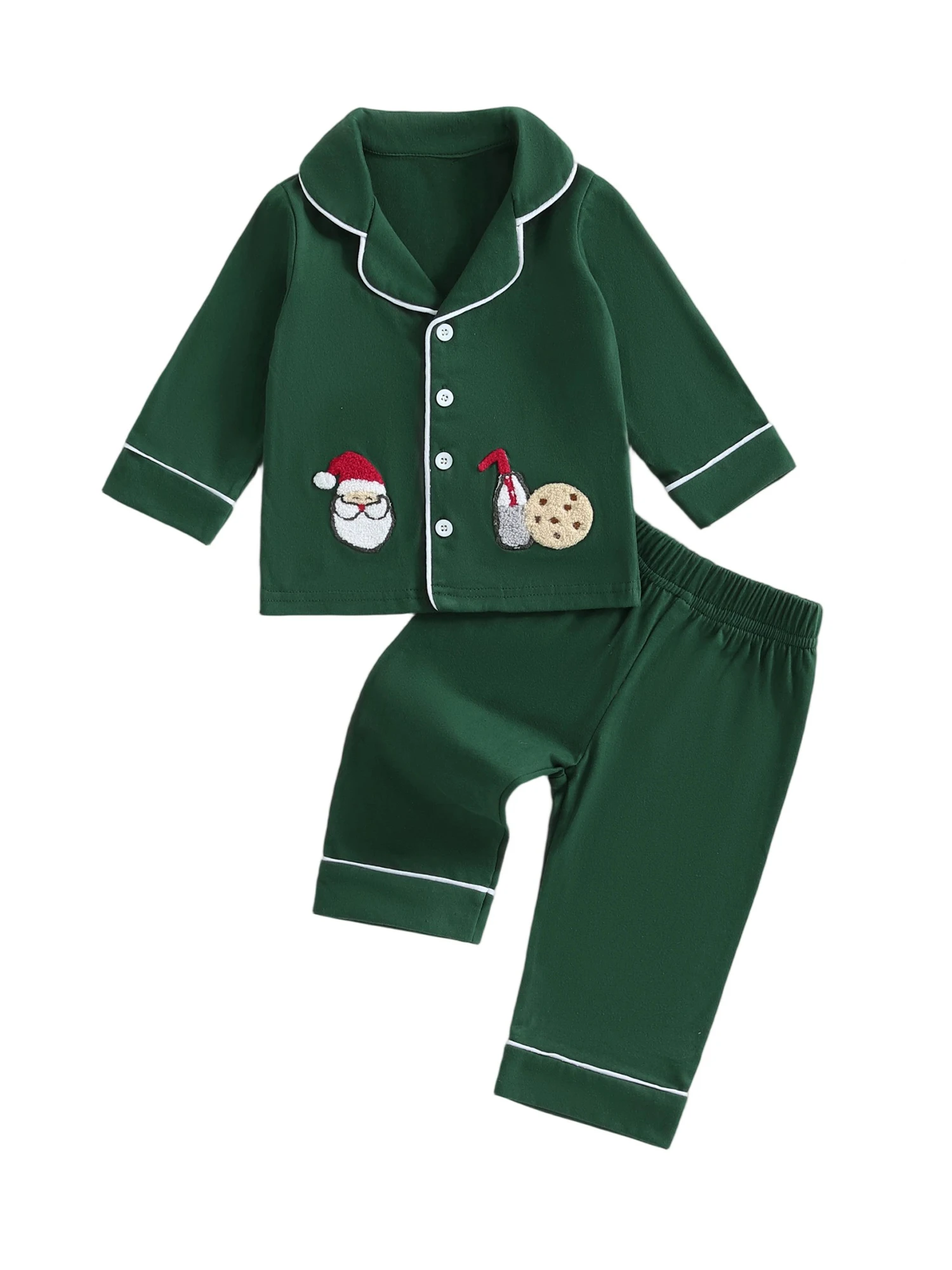 Toddler 2Pcs Christmas Pajamas Long Sleeve Santa Embroidery Shirt and Pants Set Baby LoungewearFeatures: