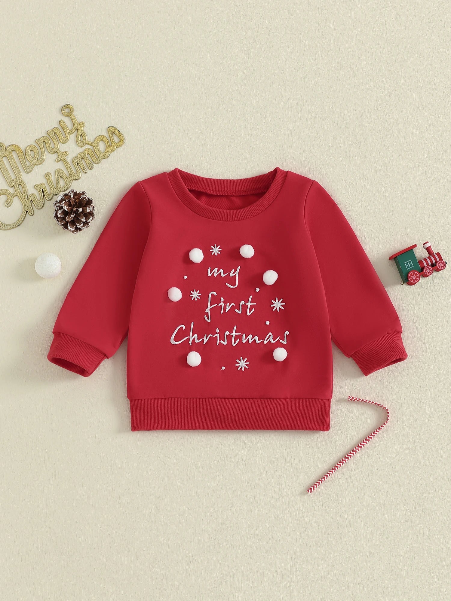 Toddler Baby Christmas Sweatshirt Letter Embroidered Crew Neck Long Sleeve Pullover for FallSize (cm)
